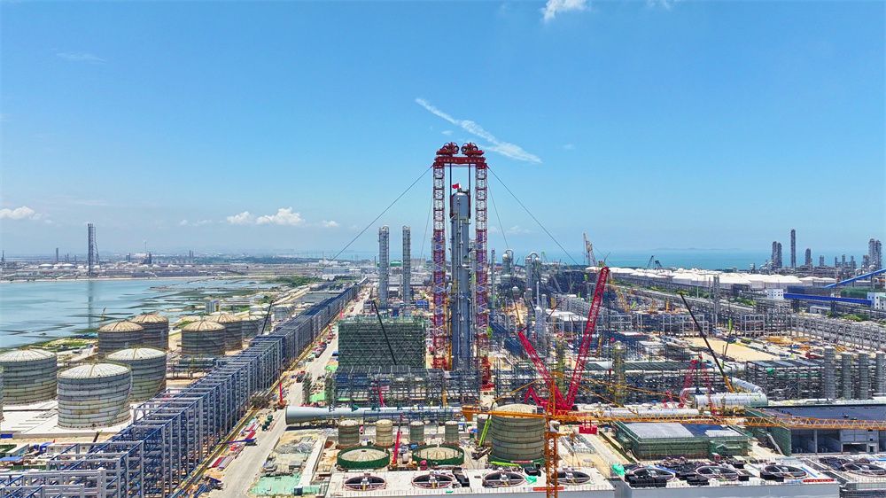 5月16日,中沙古雷乙烯项目EOEG洗涤塔在福建省漳州市古雷石化基地成功吊装。(图片来源:本文图片均自中新社)