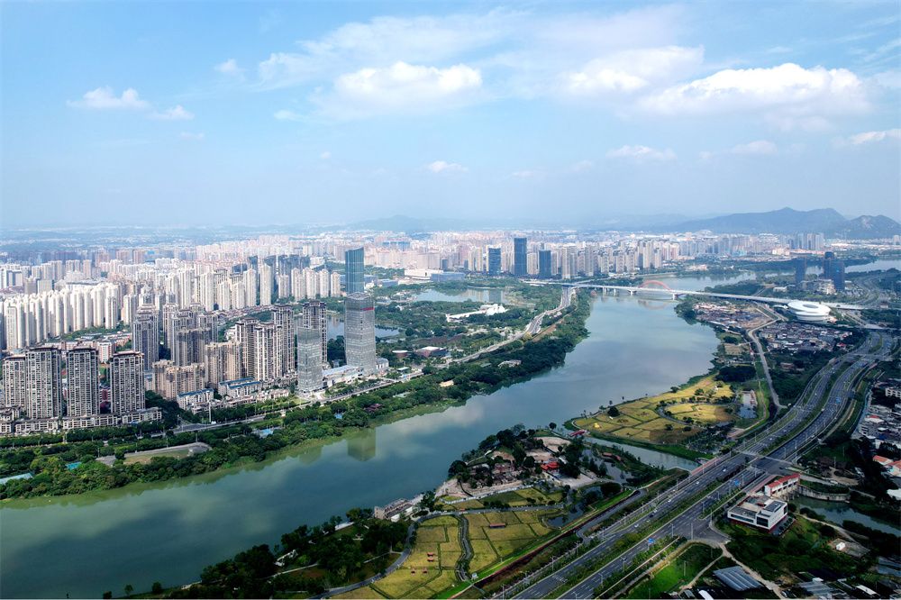2024年10月18日,航拍福建省漳州市中心城区,九龙江畔的城市建设美景如画。