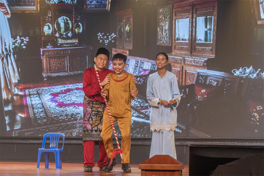 当地时间9月25日,马来西亚第七届全国华文小学戏剧观摩赛在吉隆坡举行颁奖仪式。图为来自马来西亚安邦华文小学的小朋友将哪吒故事融入马来西亚普通家庭。(图片来源:中新社)