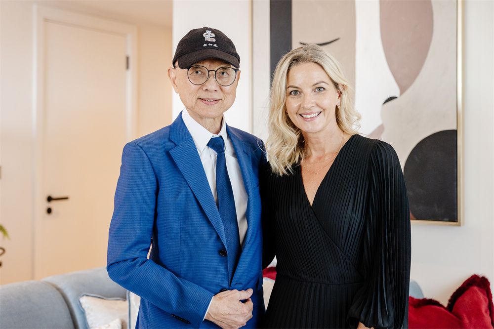 周仰杰教授(左)和伯克利集团旗下St James销售总监Becky Boden,在秀前接受《欧洲时报》采访。
