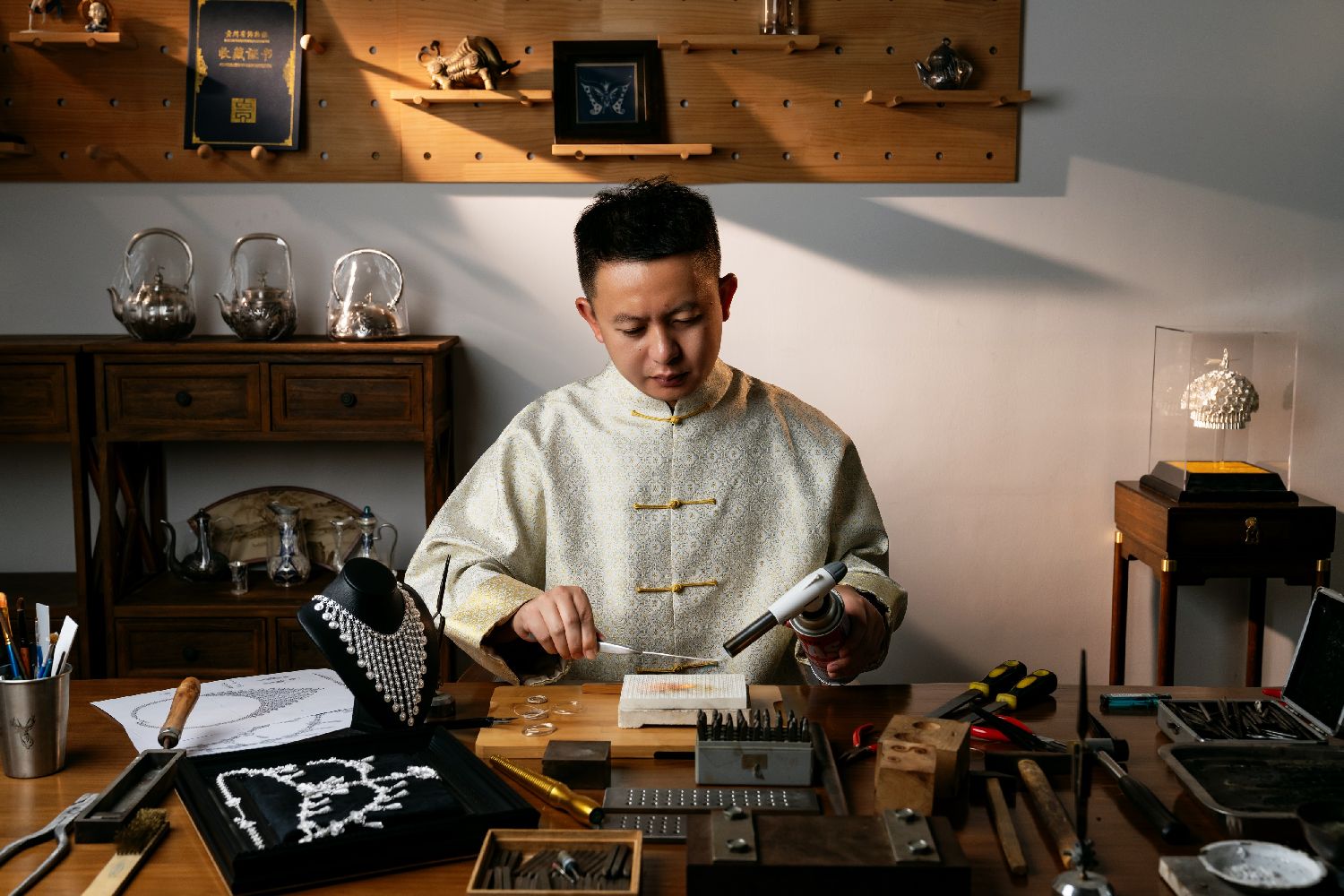 作为新一代的非遗传承人,张晓深耕中国传统银饰工艺15年,精通线雕、花丝等多项国家级非物质文化遗产技艺。将深厚的文化底蕴与匠心精神倾注于设计之中,张晓成功构建出一种“东方意境,世界表达”的美学体系,让每一件作品都承载故事、体现文明互鉴。