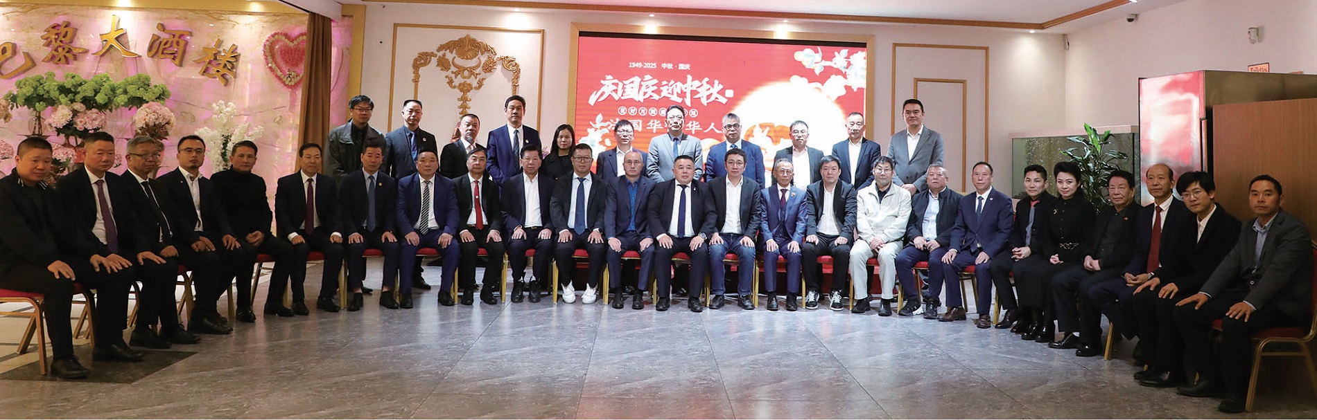 当晚的庆祝活动由法国华侨华人会第一副主席丁仕定主持。主席蔡君柱代表协会向大家致以节日的祝福。他表示,今年适逢中国人民抗日战争暨世界反法西斯胜利八十周年,我们也借此缅怀先烈、铭记历史,珍爱和平,共创未来。他还向大家介绍应邀幸赴京参加‘九三’纪念活动的经历和感受。他表示,法国华侨华人会始终以团结侨胞、服务侨社、促进中法交流为己任。值此良辰美景之际,愿我们携手前行,传承中华文化,团结奋进,为侨社发展与民族复兴贡献智慧和力量。