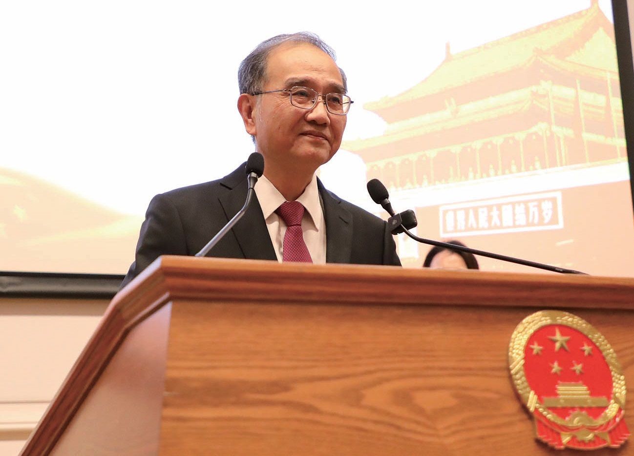 邓励在致辞中回顾新中国辉煌发展成就和对世界和平发展事业的突出贡献,指出中国之治归功于中国共产党坚强领导、坚持以人民为中心的发展理念、做好长远规划并狠抓落实。中国的发展为世界带来实实在在的好处。作为货物贸易第一大国、服务贸易第二大国,中国发挥全球贸易“稳定锚”作用。制造业外资准入限制“清零”,外资准入负面清单限制措施缩减到29项,为全球企业共享中国超大市场创造更大空间。中国构建全球最大、发展最快的可再生能源体系,是节能减排最大贡献国。中国是联合国第二大会费国,分摊比例超过20%,累计派出维和人员5万余人次,在安理会常任理事国中派出维和部队最多。中国还是G20成员中落实缓债金额最大国家。