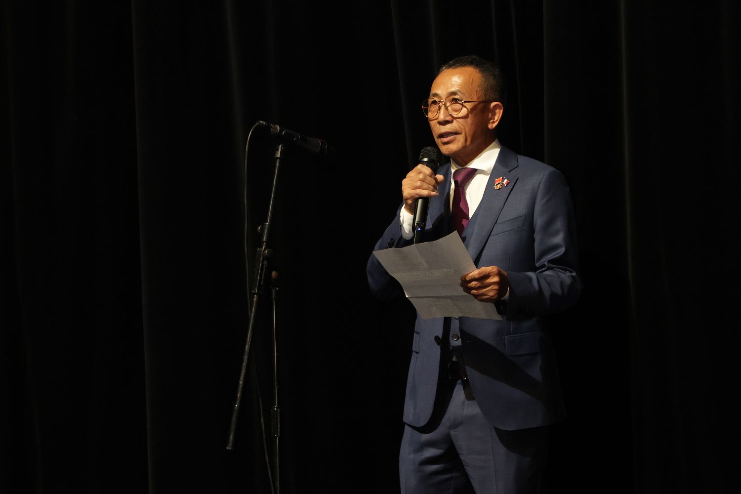 Aurélien Véron在致辞中表示,今晚大家庆祝中国国庆节,并纪念中国人民抗日战争暨世界反法西斯战争胜利80周年,法国也经历过类似的流血和牺牲。战争划定了国界,和平则填补了国界;和平推动国家的建设,让人民安居乐业。《黄河大合唱》是中国交响乐中最具代表性的作品之一。这部由冼星海创作于抗日战争时期的大合唱,因他与法国的直接联系,让今晚的演出具有非凡意义。