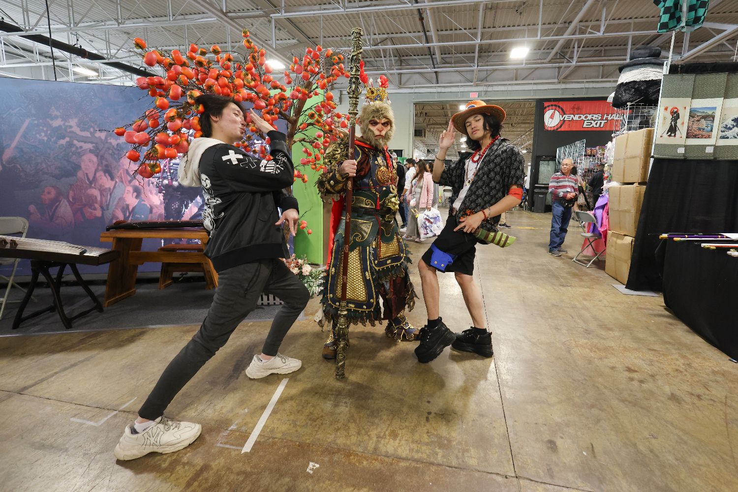 当地时间5月25日,加拿大多伦多,在北美动漫节上,一位动漫coser(角色扮演者)以中国国产游戏《黑神话:悟空》的悟空形象现身,吸引动漫迷合影。(图片来源:中新社)