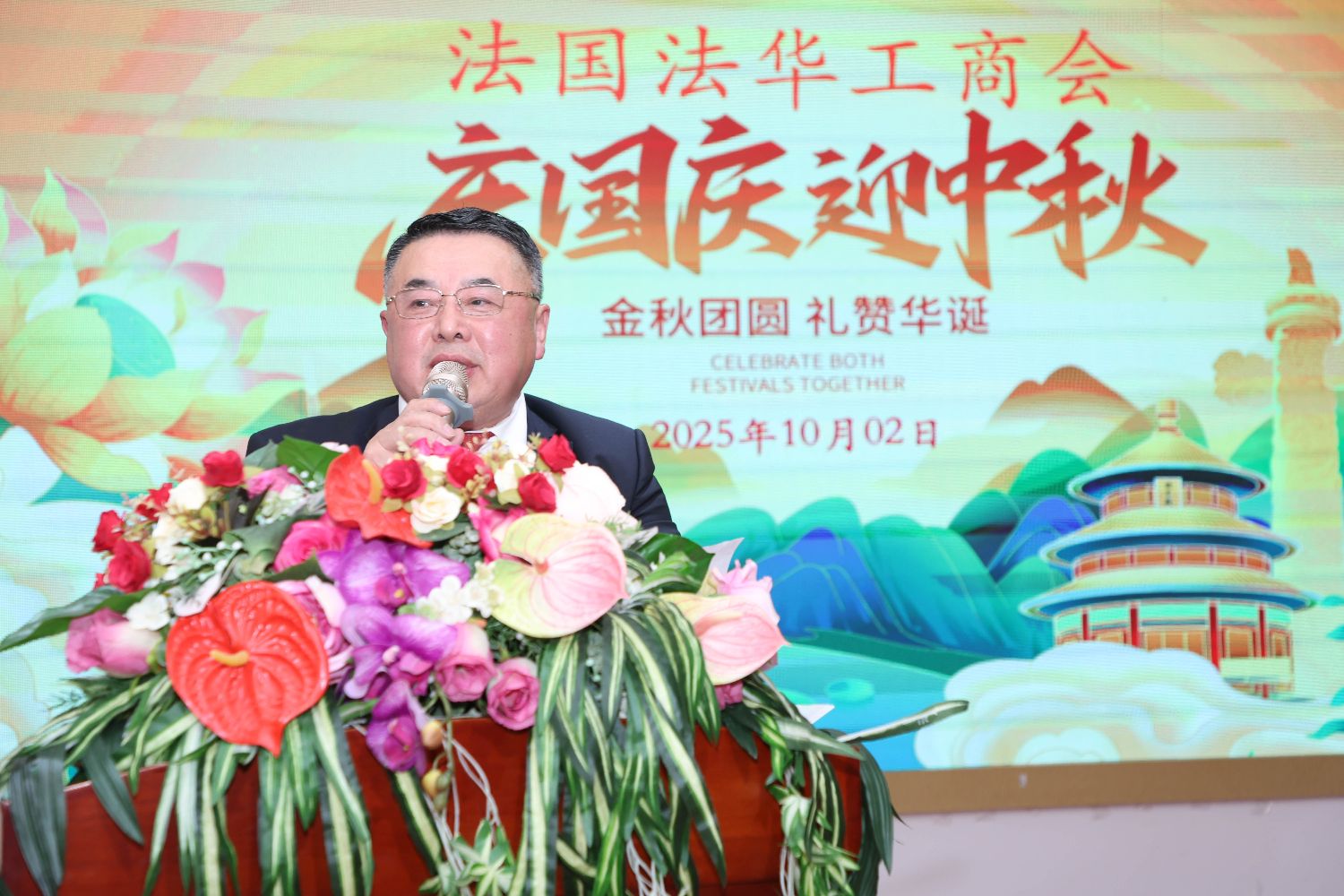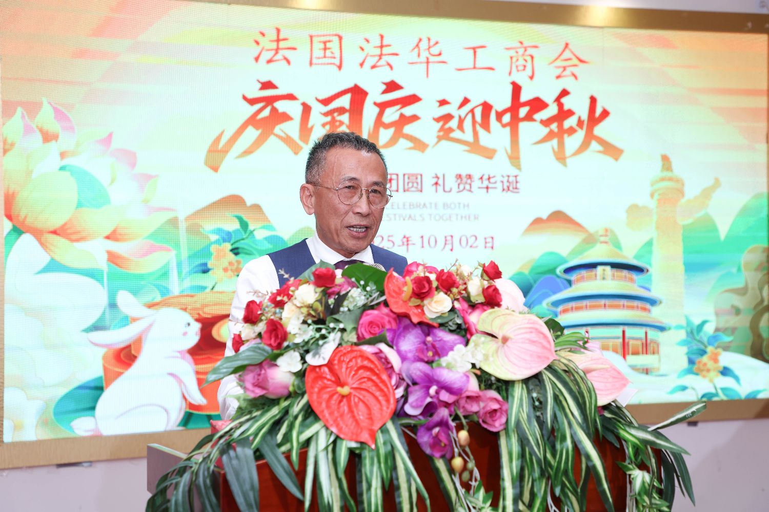 蔡君柱在致辞中表示,长期以来,法国法华工商联合会作为旅法侨界中具有重要影响力的大会之一,始终秉持服务侨胞、团结侨界的宗旨。可以说,法华工商联合会不仅是广大侨胞信赖依靠的温暖大家庭,更是侨界发展中一支不可或缺的重要力量。昨天,协会成功举办了气势恢宏的《黄河大合唱》演出,让侨胞们在海外再次感受到中华文化的壮丽与博大,激发了我们心中炽热的爱国情怀。让我们以满腔的热情,同贺新中国七十六周年华诞,欢度中秋佳节。让我们为祖国的繁荣昌盛、国泰民安而骄傲,为侨界的团结进步、事业兴旺而自豪。