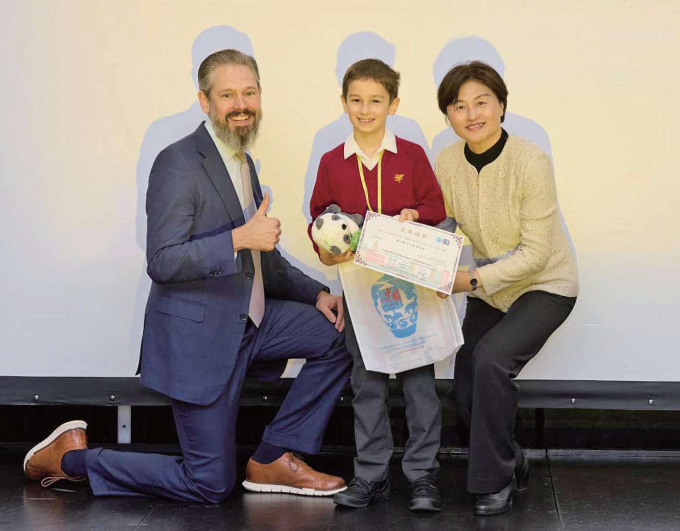 来自Kensington Wade School的Henry Quasha上台领奖合影,他本次获得了KS1个人组二等奖。