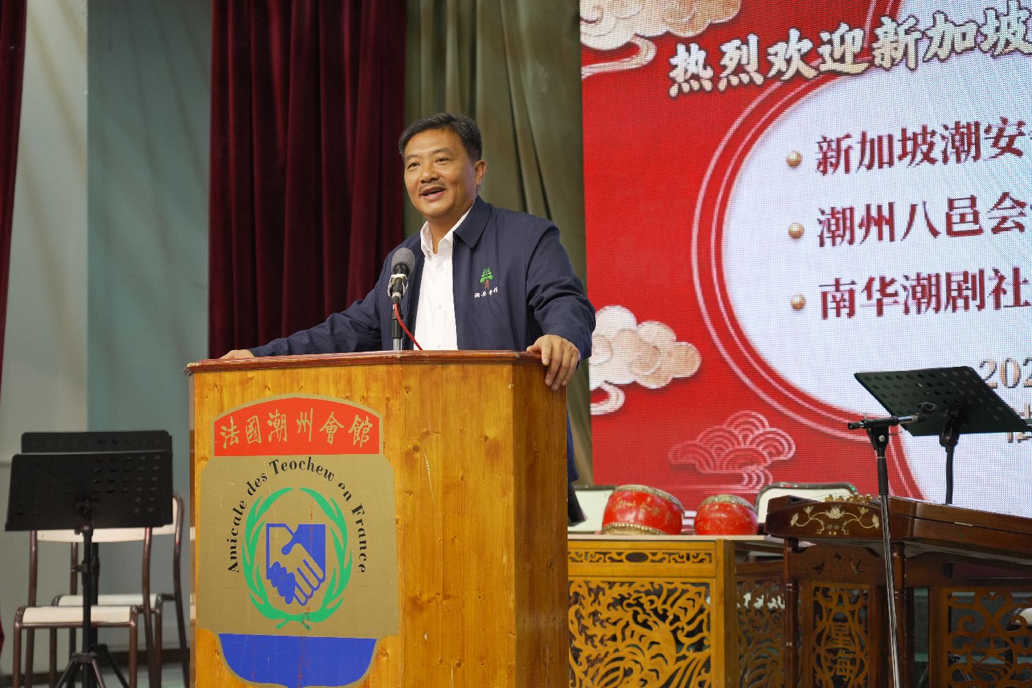 法国潮州会馆会长许葵在致辞时热情欢迎了新加坡代表,表示新加坡潮籍社团实力雄厚,人材贡献大,并举例赞扬其不断努力弘扬潮州文化,传承传统精神的实际案例。此外,他回顾了法国潮州会馆自1986年创办以来的历程,其中包括成员在法国社会不同领域所取得的成就。他希望借此契机,双方加强合作、共向进步。