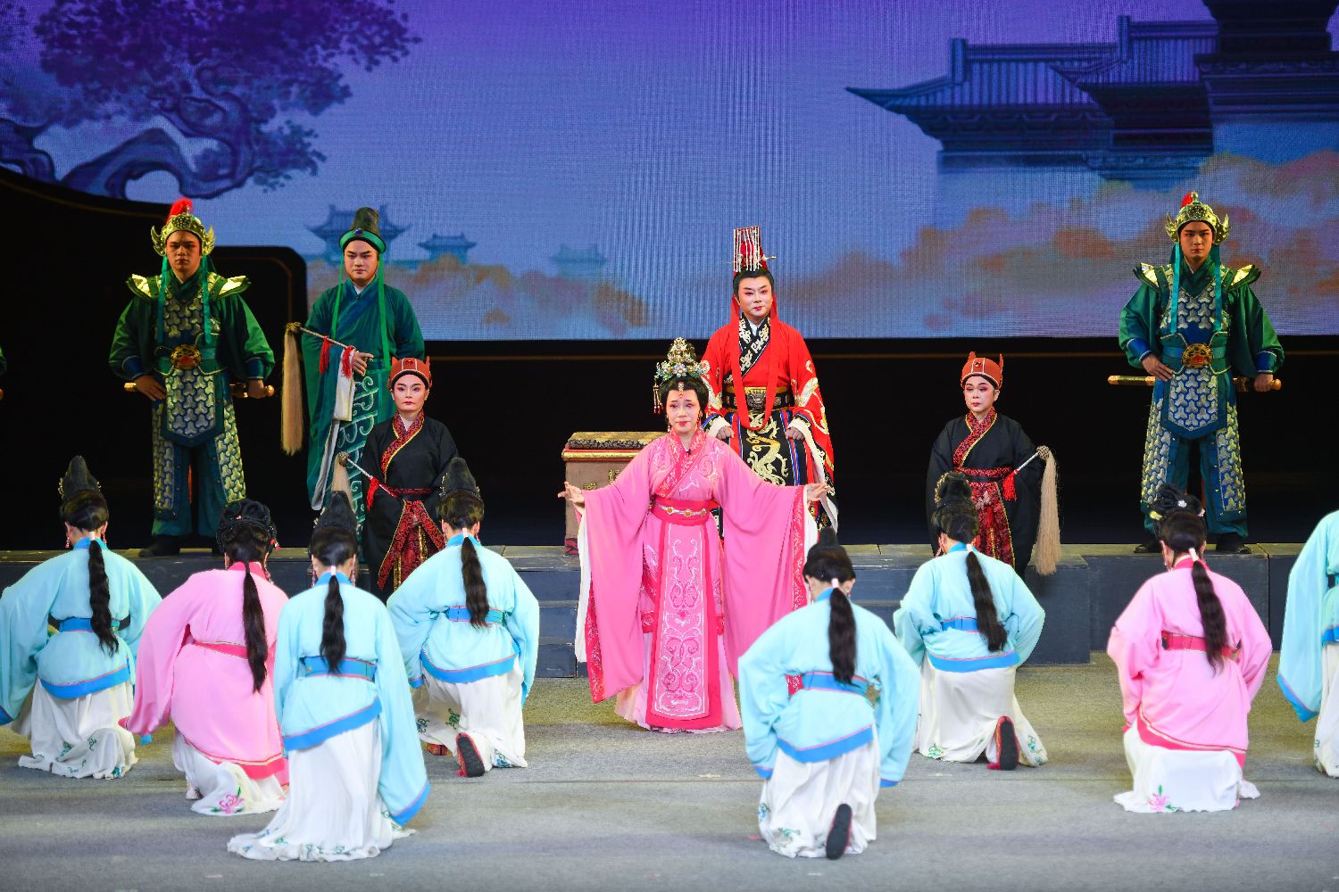 10月18日晚,新加坡海南协会琼剧团与海南省琼剧院在海口联袂献演大型新编历史琼剧《汉文皇后》。(图片来源:中新社)