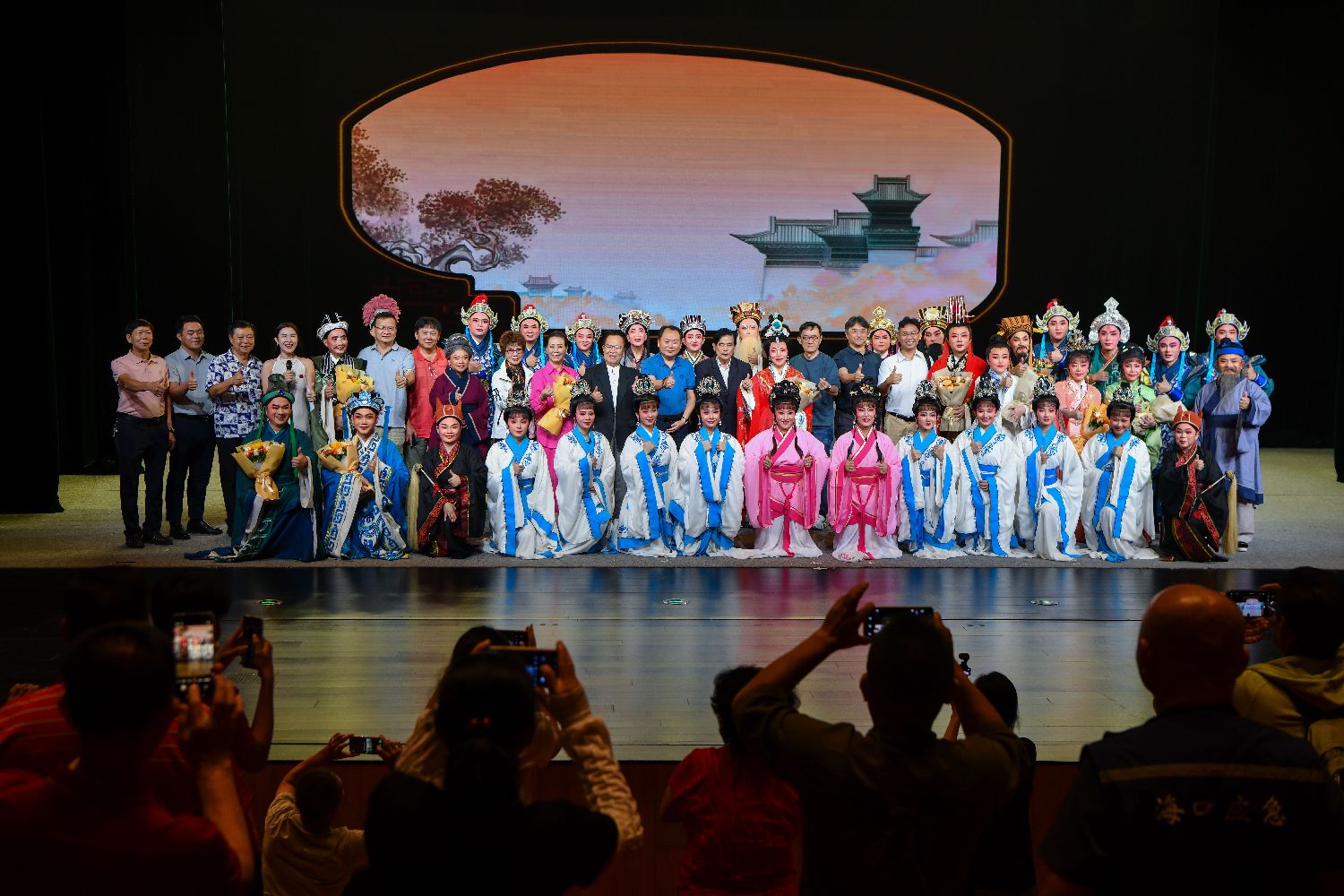 10月18日晚,来自新加坡和海南两地的演员在演出结束后与嘉宾合影。(图片来源:中新社)