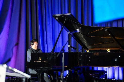 郎朗在慈善晚宴上表演。