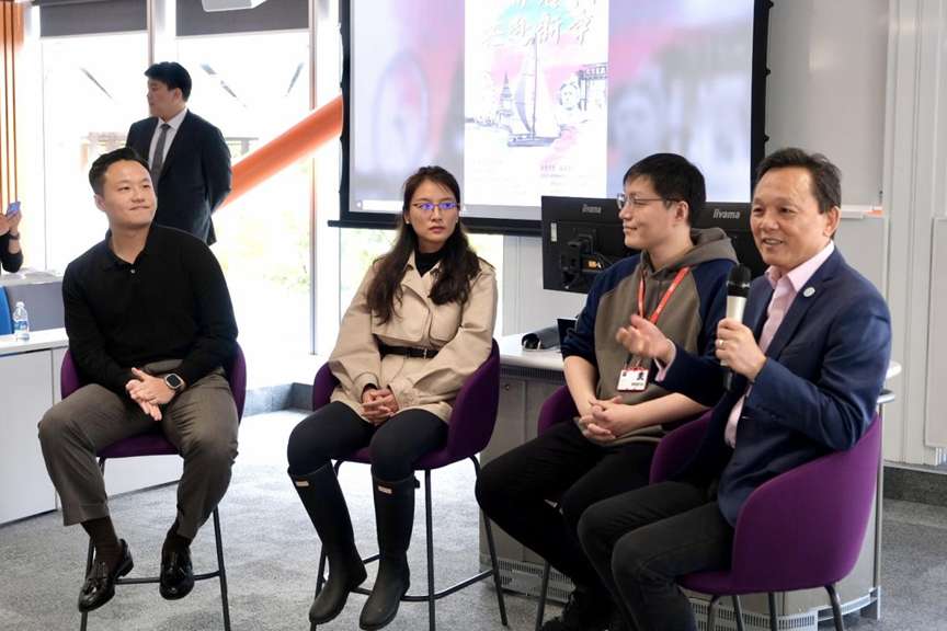 活动的圆桌论坛环节由多位学术界嘉宾领衔,分别是东伦敦大学谭大维教授、伦敦政治经济学院胡肖然助理教授、赫特福德大学研究员李瑶博士及伦敦国王学院博士后研究员袁振博士。他们结合自身在英学习与职业发展经历,与同学们分享交流。现场提问踊跃,嘉宾们倾囊相授,同学们表示收获满满。