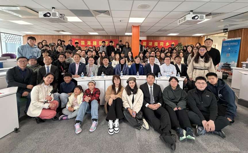 【欧洲时报实习记者卢天爱报道】英国时间2025年10月18日,拉夫堡大学伦敦校区迎来了一场专属于湖南学子的“湘伴启航”迎新活动。近120名来自湖南的师生欢聚一堂,新老面孔亲切交谈,共同见证并延续了海外湘情的温暖力量。