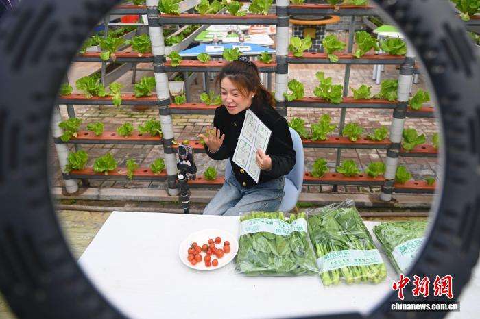 图为工作人员直播销售蔬菜。(图片来源:本文图片均来自中新网)