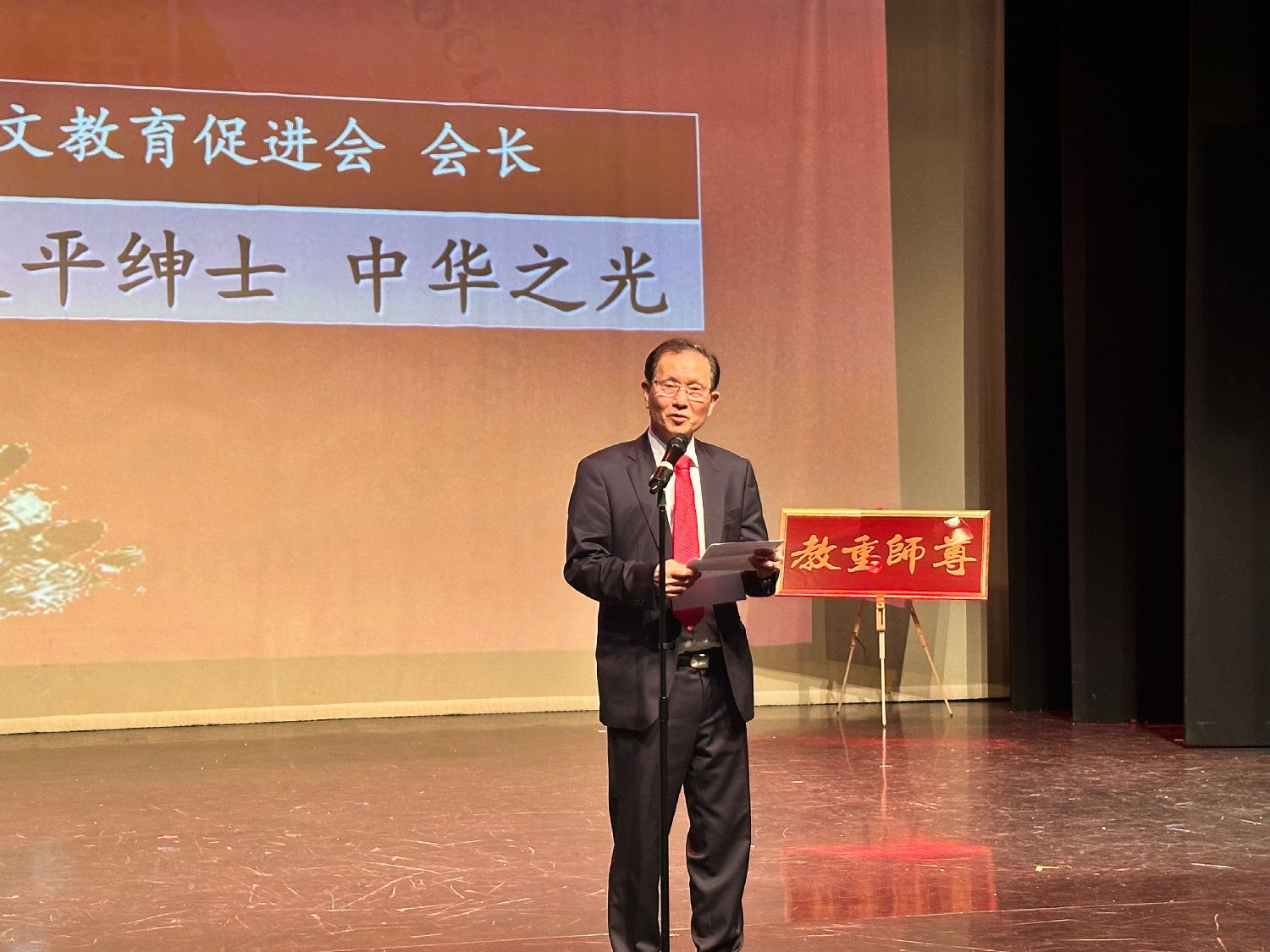伍善雄发表致辞指出,英国中文教育促进会将每年10月的第三个星期日设立为英国“华文教师节”,旨在弘扬中华民族尊师重教的优良传统,让辛勤奉献的华文教师拥有属于自己的节日。他向全体教师代表与侨界嘉宾致以诚挚的欢迎与感谢,肯定他们长期以来对英国华文教育事业的支持与投入。