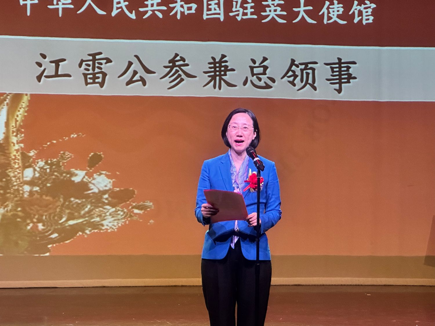 10月26日,中国驻英国大使馆公参兼总领事江雷出席活动并讲话。(图片来源:中新社)