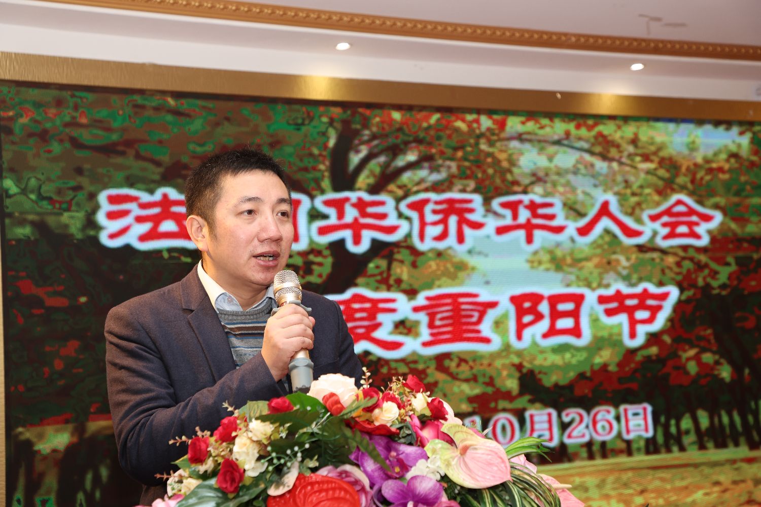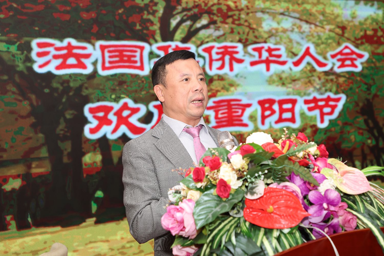 蔡君柱在致辞中表示,重阳节是中华民族尊老、敬老、爱老的节日,也是我们表达感恩、传承精神的时刻。各位老前辈是旅法华侨华人事业的开拓者,是侨界发展的见证者和建设者。多年来,你们为法国华侨华人会的发展倾注了大量心血,为侨界团结、文化传承、中法友好做出了不可磨灭的贡献。今天的每一份成果,都凝聚着你们的智慧与汗水。我们年轻一代要倍加珍惜这份精神财富,把尊老敬老、爱国爱乡的传统继续发扬光大。