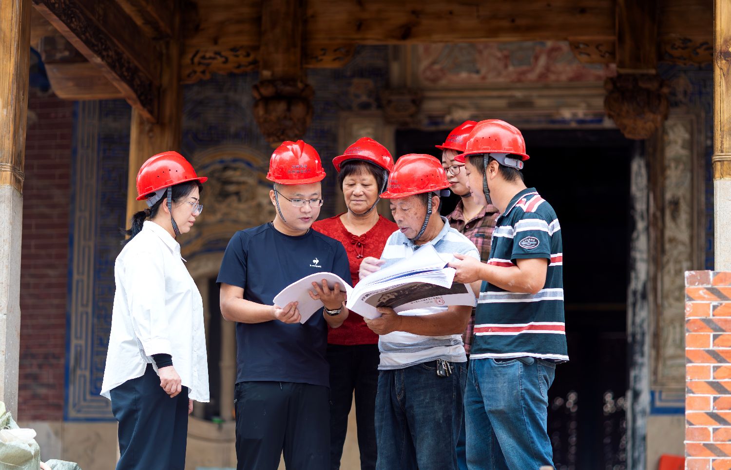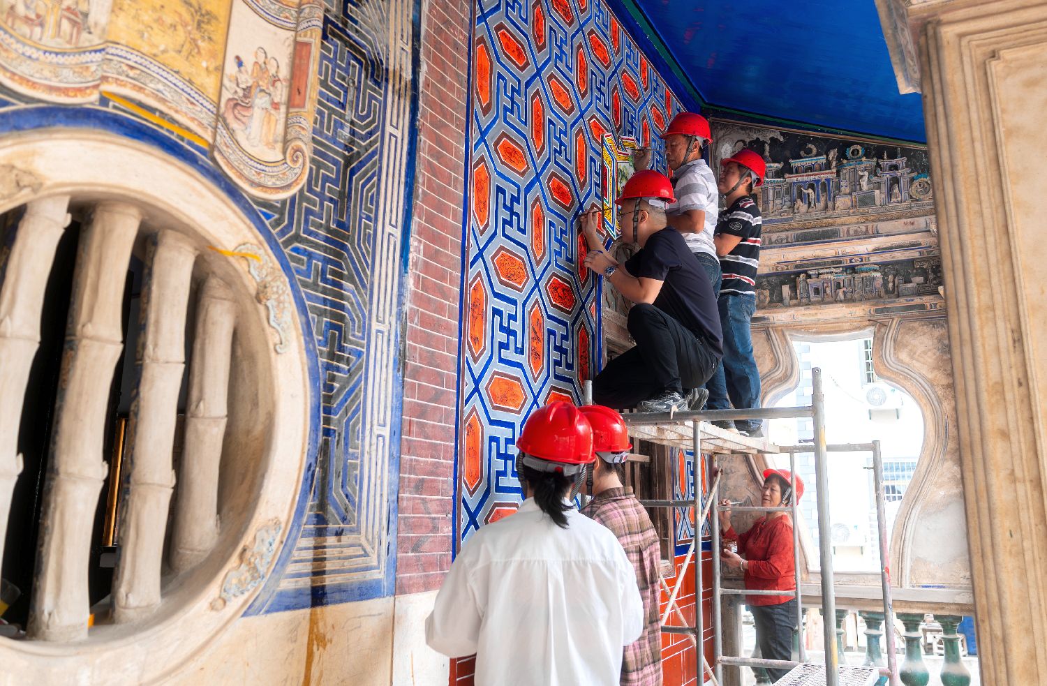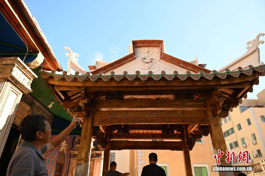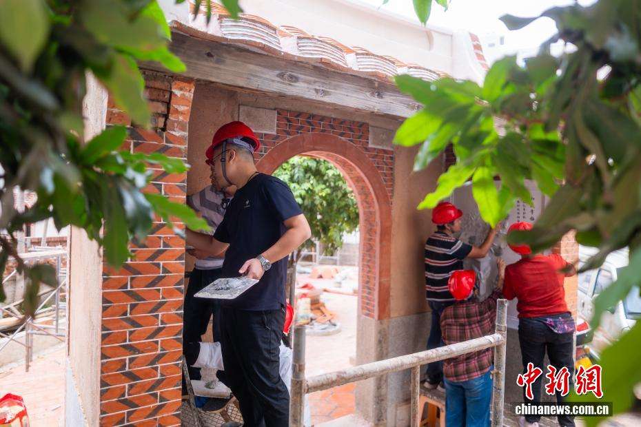 图为10月23日,陈和永一家在厦门修缮侨厝“爱吾庐”。陈和永表示,他们一家已形成完整的传承梯队,他的妻子、两个儿子及儿媳均获不同级别的代表性传承人和乡村工匠头衔,且各有专长。(图片来源:中新社)