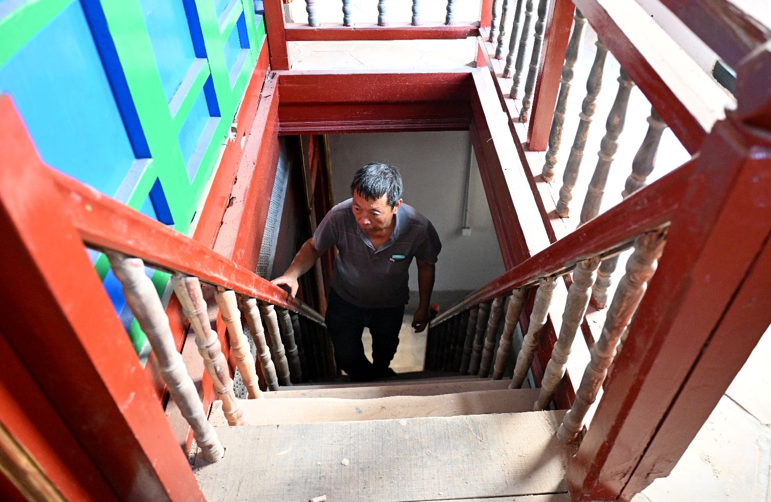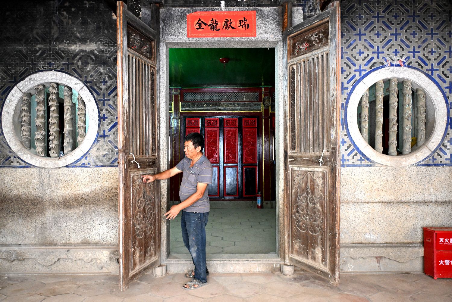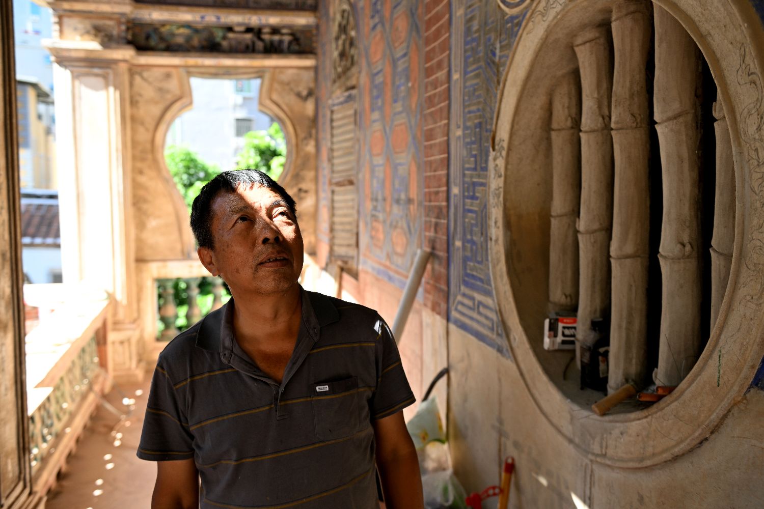 图为11月5日,陈和永在厦门侨厝“爱吾庐”内检查修缮情况。(图片来源:中新社)