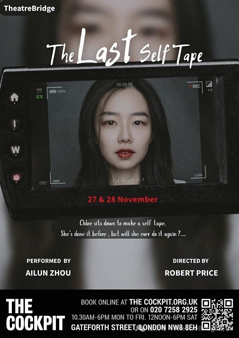 【欧洲时报讯】由华人演员、编剧周艾伦(Ailun Zhou)创作并主演,英国导演Robert Price联合编剧的独角戏《终场自述》(The Last Self Tape),将于11月27日登陆伦敦The Cockpit剧院。该剧将以锐利而克制的方式揭开当代表演者在数字化时代的真实困境。
