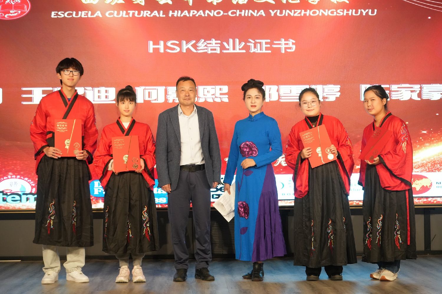 2025年11月15日,由西班牙中西文化互融协会、云中书语文化学校联合主办的“庆祝中西建立全面战略合作伙伴20周年暨HSK颁奖典礼”在马德里香格里拉大酒店隆重举行。来自侨界、文化教育界及西班牙多家友好机构的嘉宾齐聚一堂,共同庆祝中西关系二十年来的深厚发展,并为华文教育优秀学员颁发荣誉。