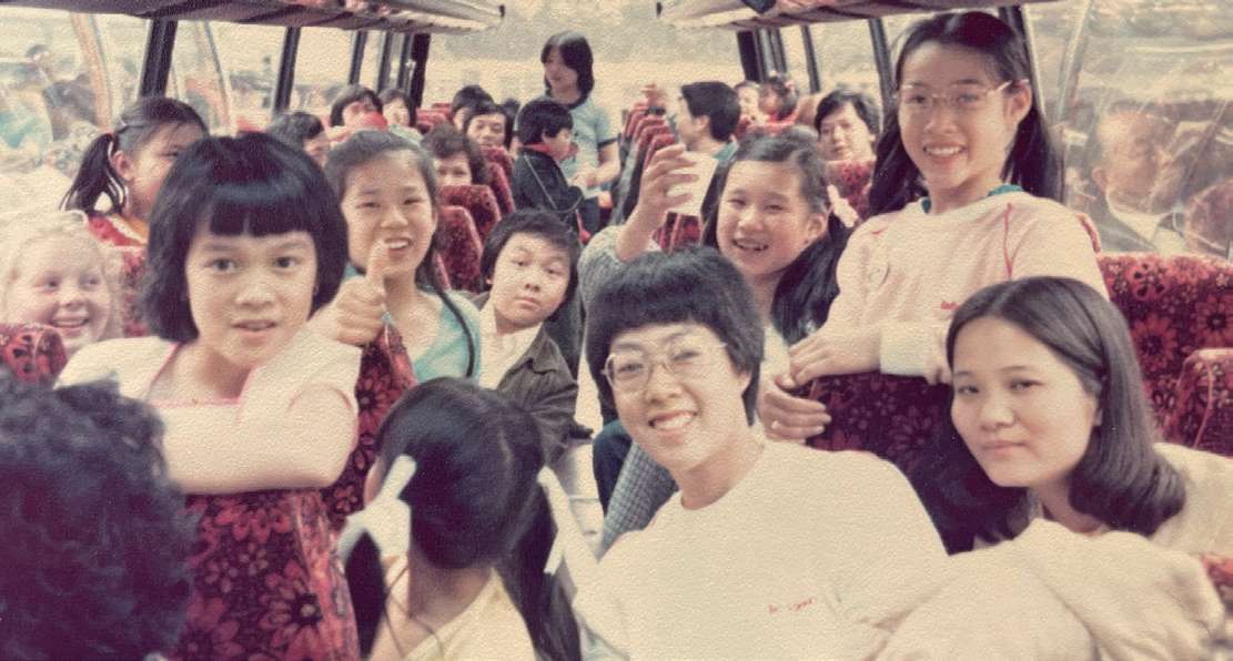 中文学校每年暑假的第一个周末都会安排一天游活动,带领全校师生去其他城市游览。图为上世纪80年代师生的旅行照片。