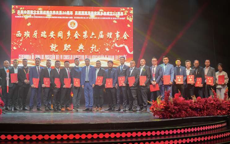 来自中国驻西班牙大使馆、西班牙地方机构、欧洲多国侨团及旅西侨界代表齐聚一堂,共同见证这一瑞安侨团发展史上的重要时刻。潘文尧先生正式就任第六届瑞安同乡会会长。