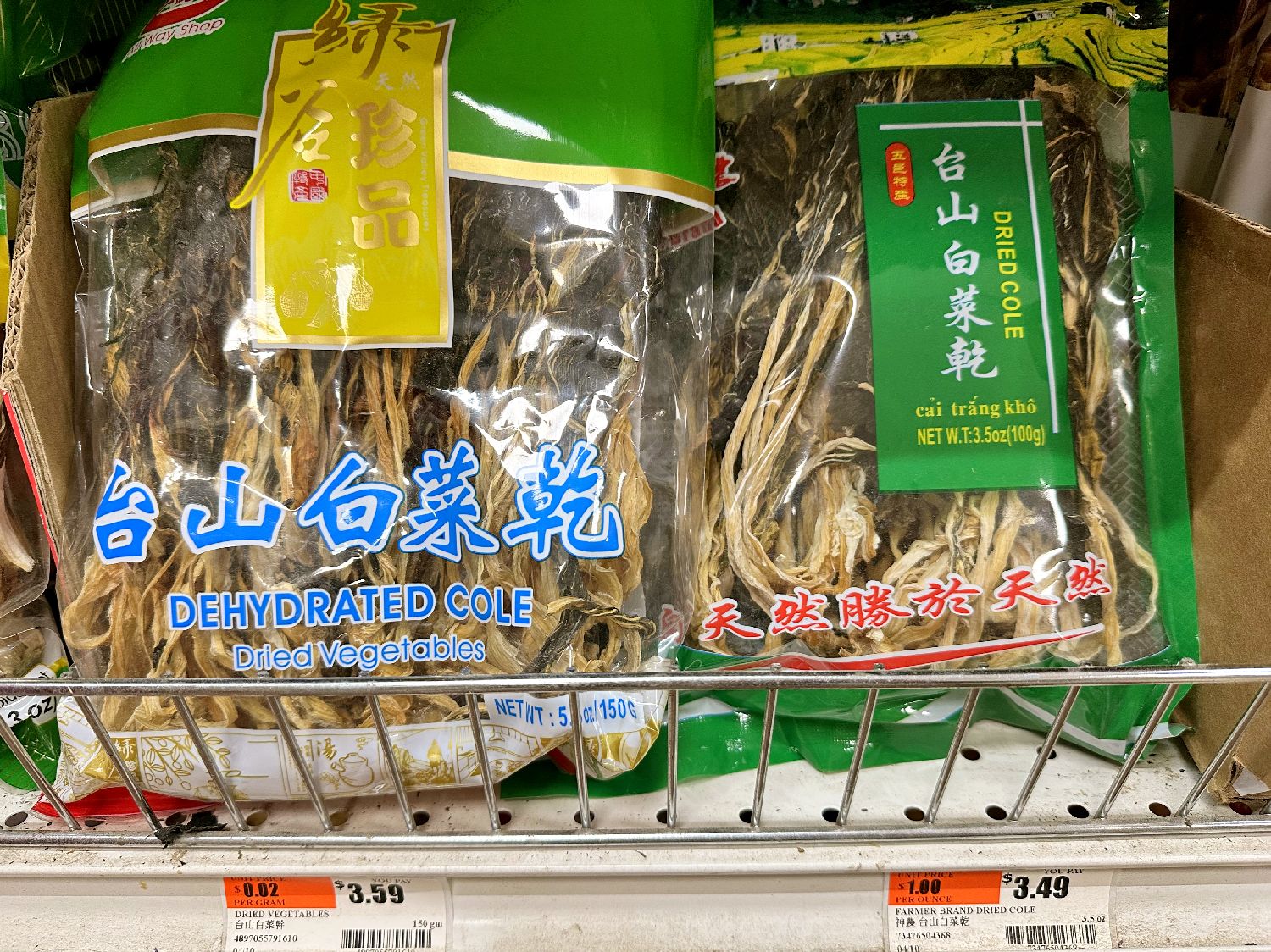 11月30日,美国纽约一家超市出售的台山白菜干。(图片来源:中新社)