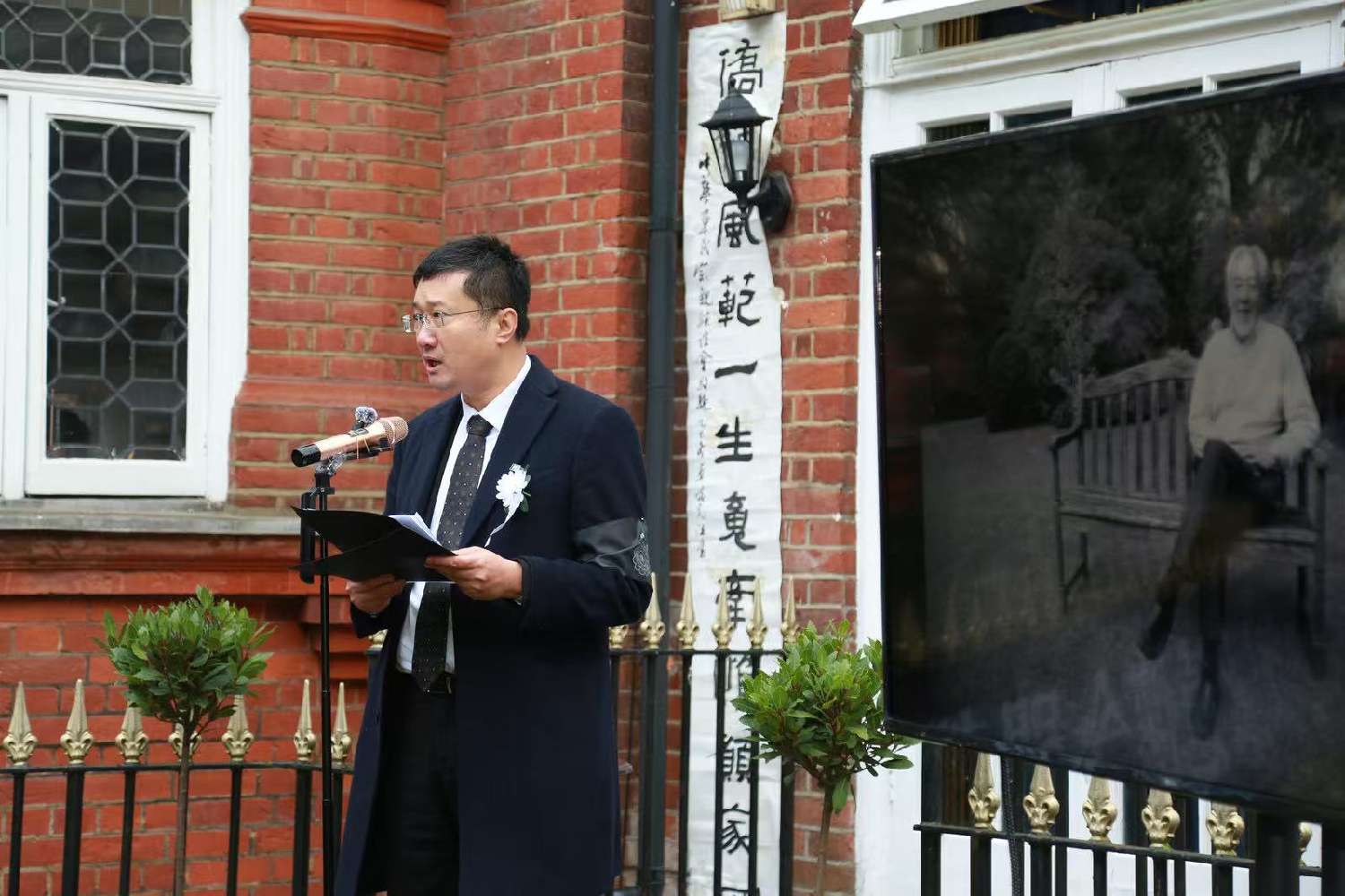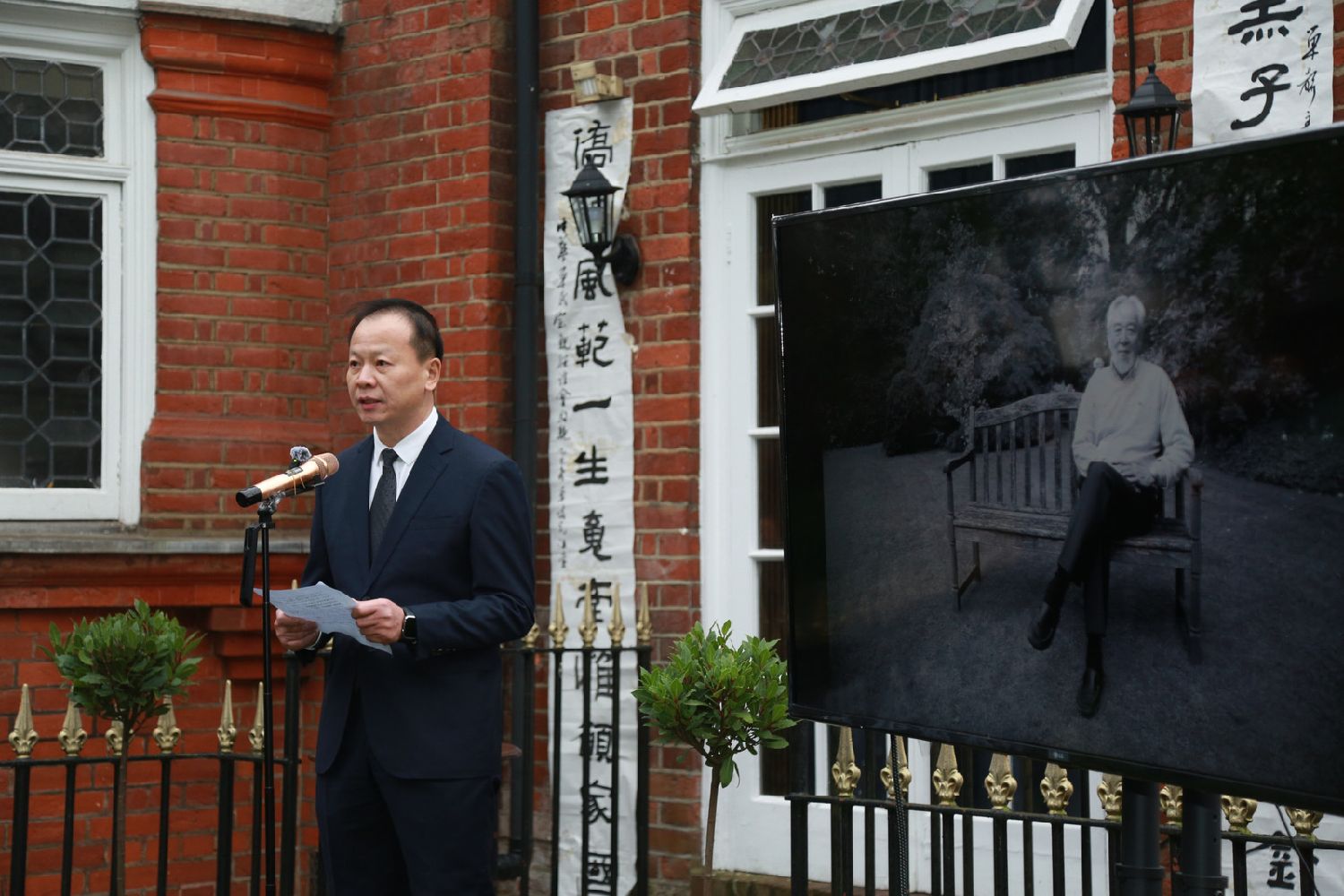 中国驻英国大使馆江雷公参代表郑泽光大使及使馆致悼词。