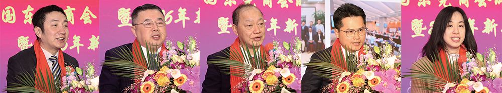 从左至右依次为:万磊参赞致辞;蔡君柱主席致辞;蔡强会长致辞;易华先荣誉会长发言;洪慧贤组长发言。(图片来源:马行健 摄)