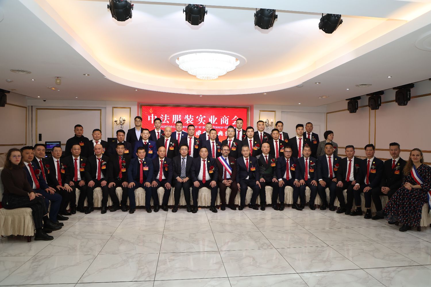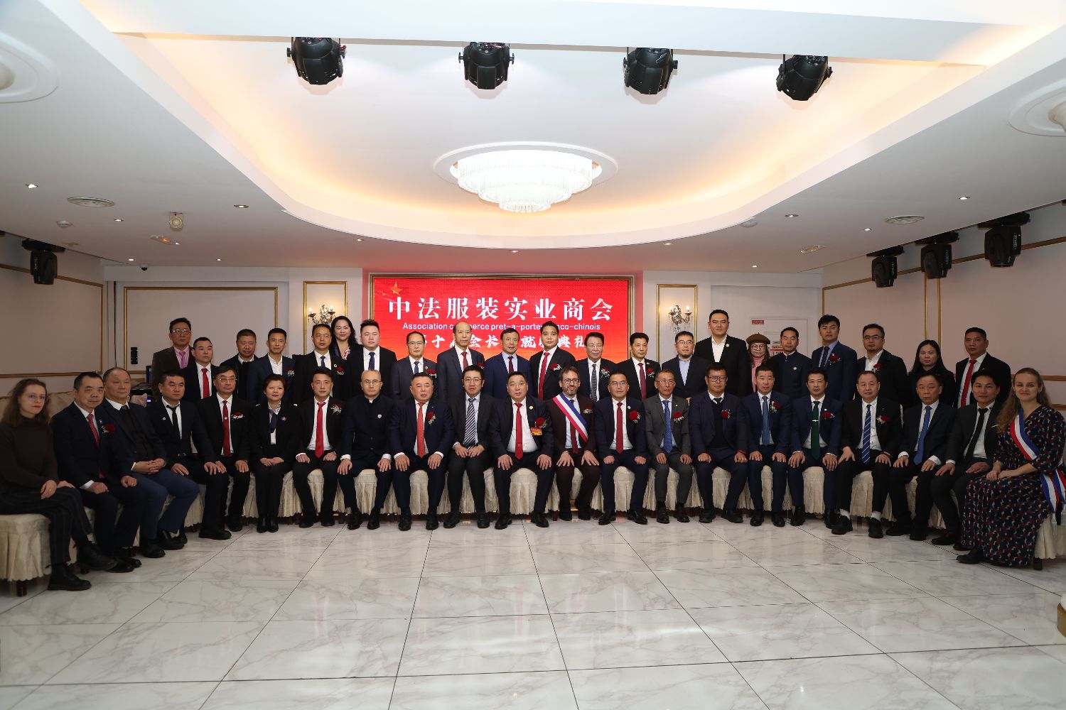 【欧洲时报记者马行健巴黎报道】当地时间1月8日晚,巴黎国际大酒店人声鼎沸,嘉宾云集,中法服装实业商会第十届会长团就职典礼在这里举行。中法服装实业商会第九届会长董志武蝉联第十届会长,董唐弟任执行会长,舒协东任第一副会长,王忠汉任第二副会长。中国驻法国大使馆领侨处万磊参赞,巴黎十区区长Alexandra Cordebard以及自中法各界的近300名嘉宾到场祝贺。欧洲时报文化传媒集团总裁、欧洲时报社社长钟诚,欧洲时报社常务副社长谢添代表欧洲时报出席活动。