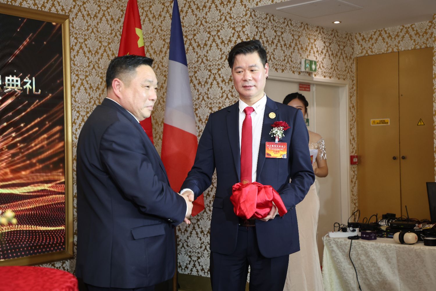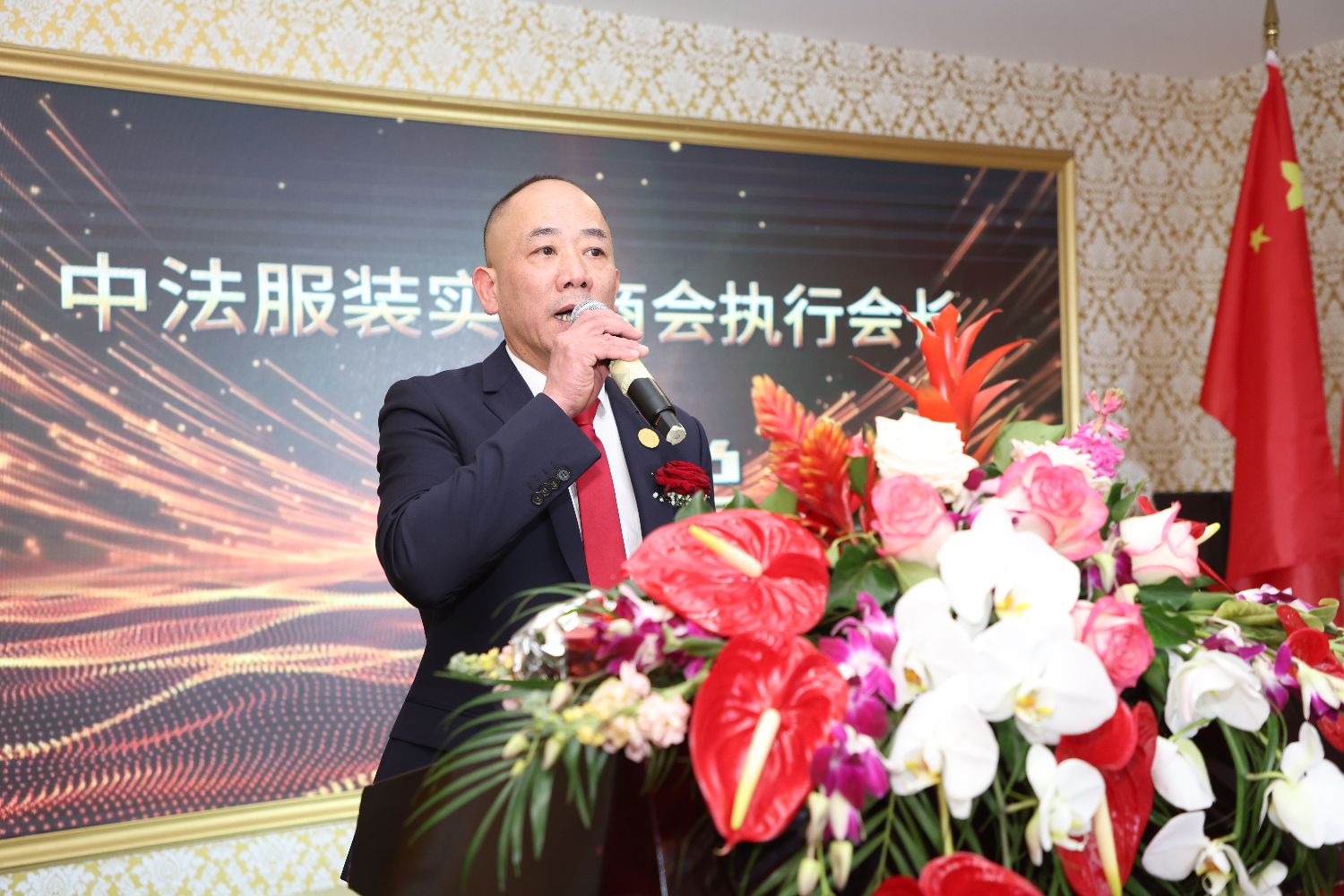 就职典礼进行期间,中法服装实业商会理事长郑盛盛、青年委员会主任丁卡罗也登台致辞。