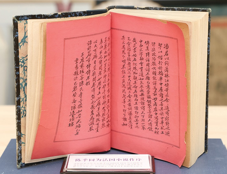 “云心堂藏书”中有一本名为《珍珠传奇》的法文书,是一位法国作家以中国题材创作的小说,出版于1891年。入藏的原因是其罕见的中文序言。序言邀请当时清廷驻法国外交官陈季同撰写,并用毛笔书写影印在前。陈季同先后在法国生活了十六年,他以娴熟的法语出版了多部介绍中国文化的法文著作,在当时的法国文化界颇为引人瞩目。直到近二十年前,陈氏的多部法文著作才引起中文世界的关注,被译成中文出版。做为“云心堂藏书”的一部分,陈氏难能可贵的文化自觉性告诉今天的我们,在中法文化交流的历史中,主动向西方介绍中华文化,中国人的起步虽然晚了些,规模也小了些,但是一个半世纪前的努力,其起点之高反在大多数中国人的意料之外。