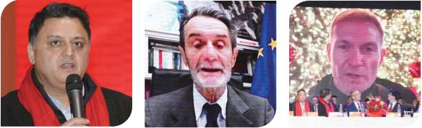 从左至右分别为:米兰大都市副市长Francesco Vassallo发表讲话;伦巴第大区主席Attilio Fontana发来祝贺讲话视频;伦巴第大区议会议长Federico Romani发来祝贺讲话视频。