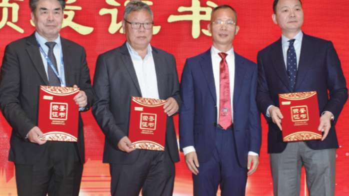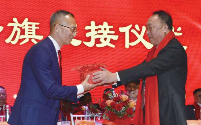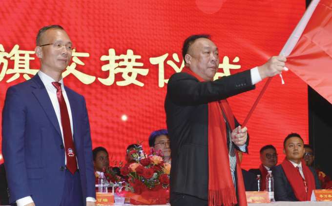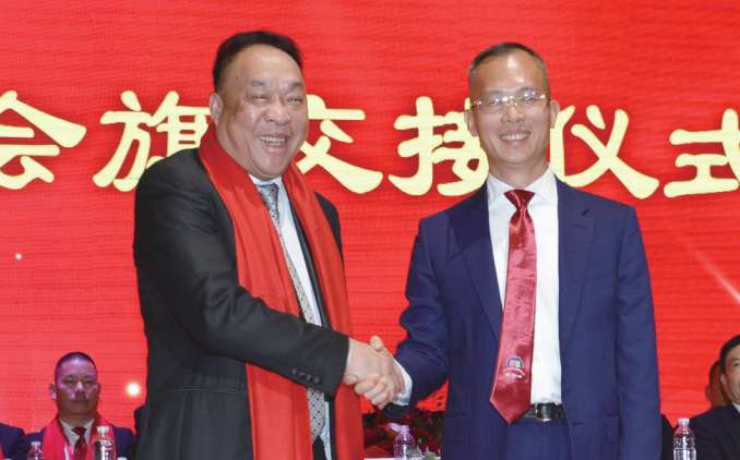 在全场嘉宾的共同见证下,老会长项新煌将促进会会旗和会印交到新会长马可瑞的手中,标志着促进会新老交接顺利完成。
