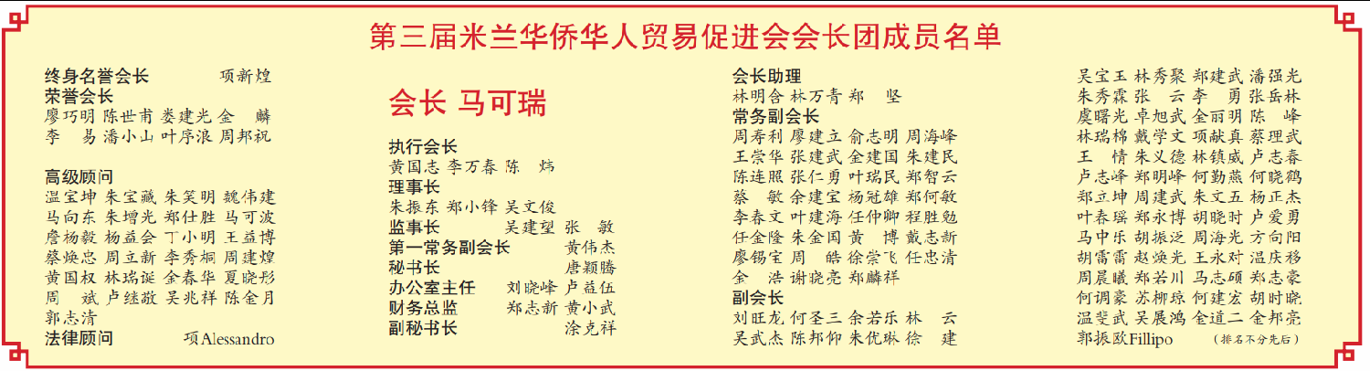 米兰华侨华人贸易促进会第三届会长团核心成员合影。