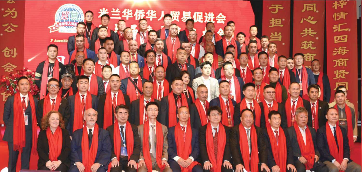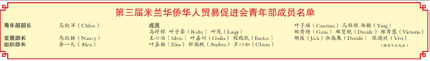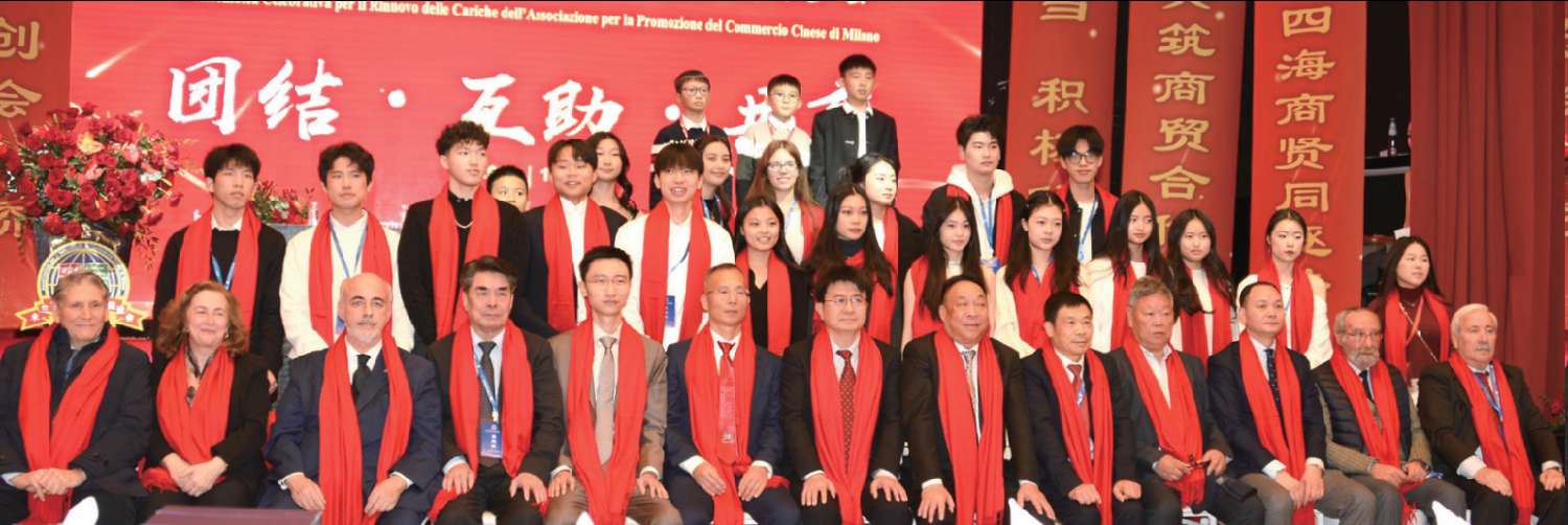 米兰华侨华人贸易促进会第三届会长团主要成员与青年部成员合影。