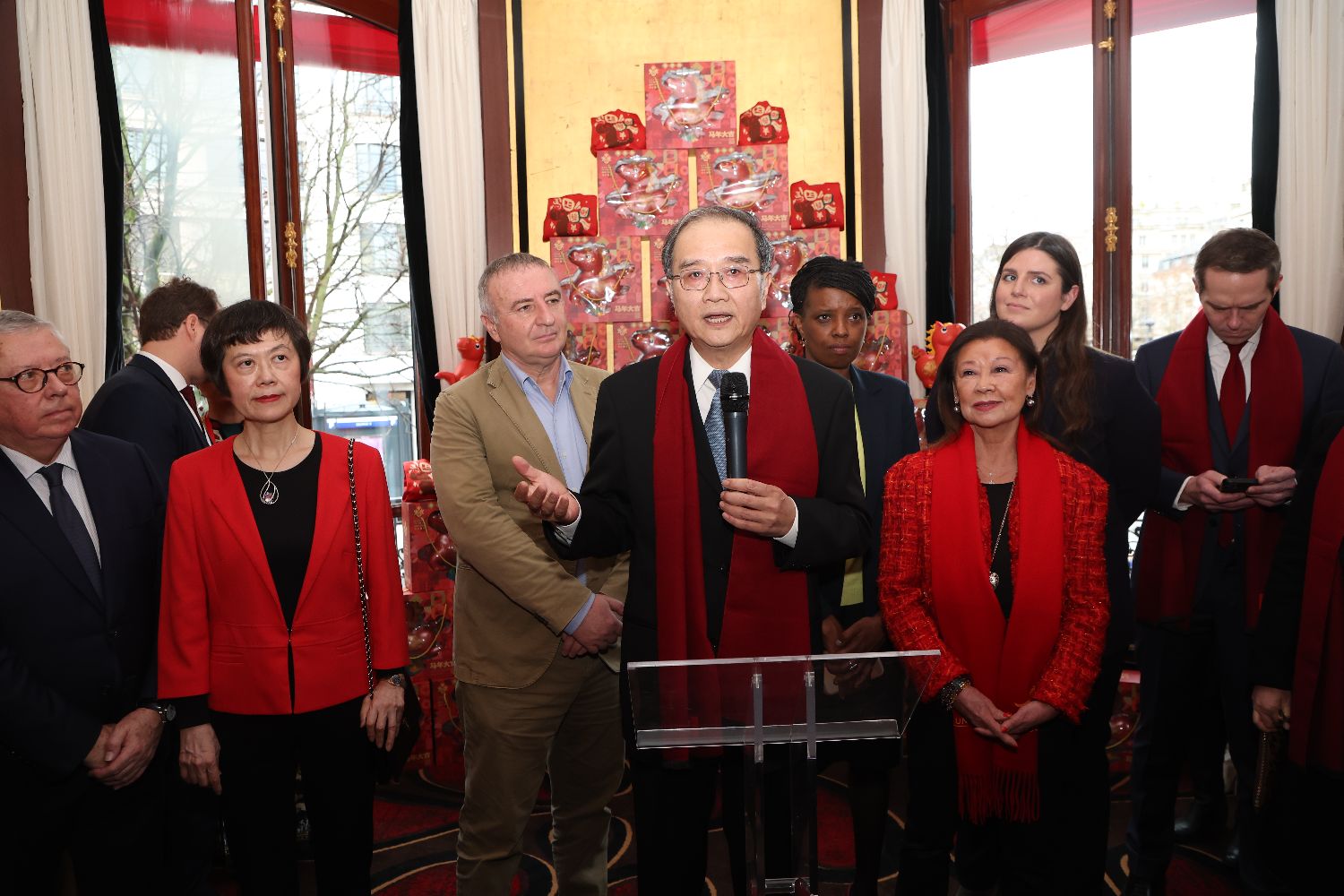 邓励在致辞中表示,春节是中华民族最重要的传统节日,是阖家团圆、辞旧迎新的喜庆日子,既代表着新的开始与希望,也蕴含着中华文化和睦、和谐的精神内核。全球近20个国家将春节定为法定节假日,约五分之一的世界人口以不同形式共同庆祝春节。今天,我们在香榭丽舍大街盛装巡游,不仅是为共庆新春佳节,更是中法文化双向奔赴的生动写照。在中华文化里,马是昂扬奋进、自强不息的象征,寓意着活力和希望。在中法关系开启“新甲子”的重要节点,希望我们以独立自信、一往无前的奋发姿态,积极推动双边经贸、科技、人文等领域合作走深走实,让中法关系在新起点上行稳致远。