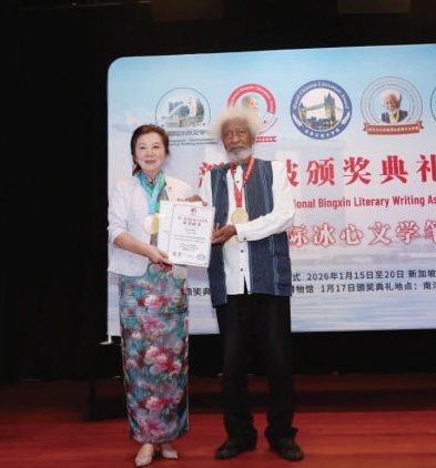 颁奖典礼上,由诺贝尔文学奖得主沃莱·索因卡与张露共同设立“索因卡·星露文化奖”,旨在发掘和表彰能够穿越语言与时代、洞察人类共通心灵、有力推动文明互鉴的优秀文学作品,让卓越的思想跨越疆界,连接不同文明。