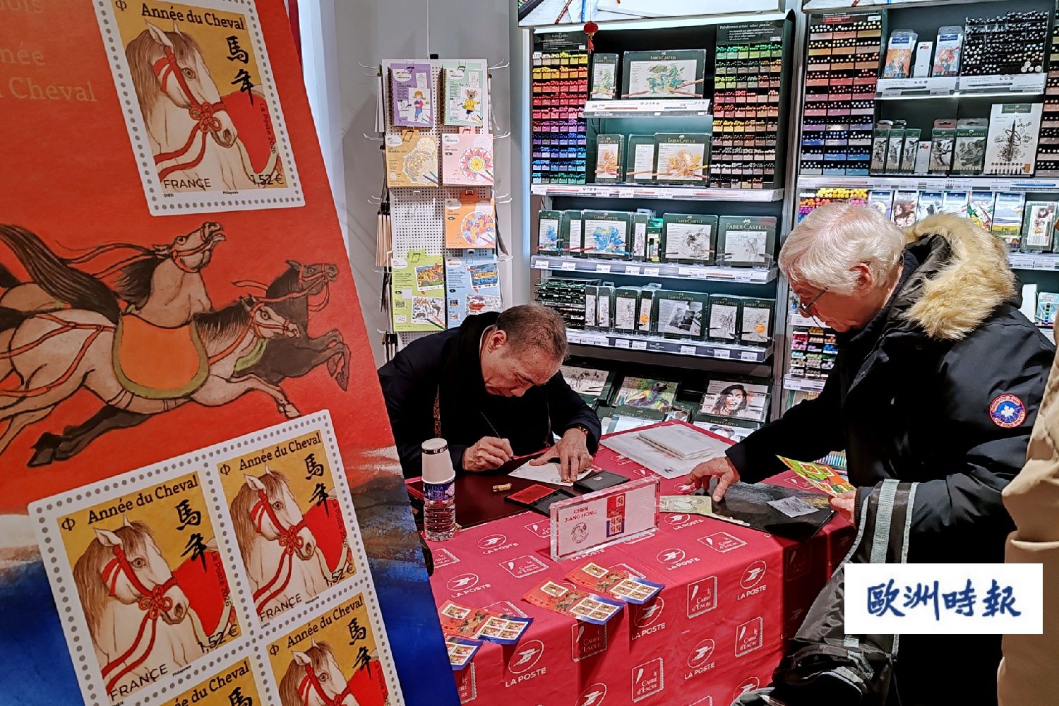 当天上午10点,许多法国集邮爱好者已经慕名等候在法国邮政集邮墨方厅门外,其中还有不少在法的华侨华人集邮爱好者。买了马年邮票之后,集邮爱好者们又依次排队等候陈江洪为大家一一签名留念。