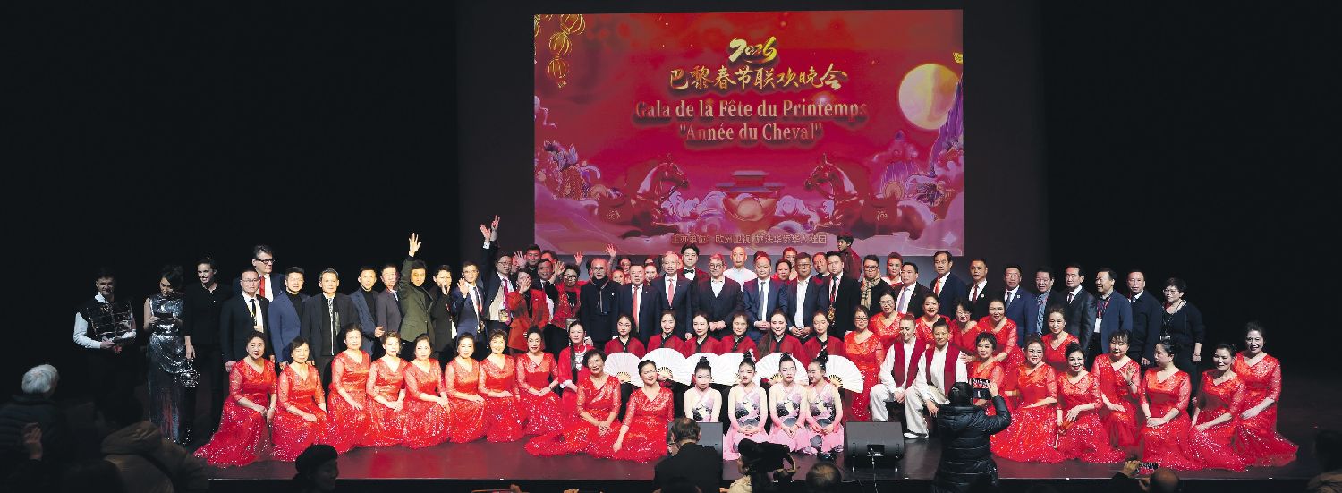 【欧洲时报记者马行健巴黎报道】当地时间2月9日晚,由法国欧洲卫视和旅法华侨华人社团联袂举办“万马奔腾贺新春”2026马年春节联欢晚会在巴黎13区艺术剧院成功举办。中国驻法国大使馆公使陈力、巴黎13区区长顾梅(Jérôme Coumet)、法国华侨华人会主席蔡君柱、欧洲卫视总裁陈世明等出席活动,来自中法各界的近千名嘉宾参加活动。