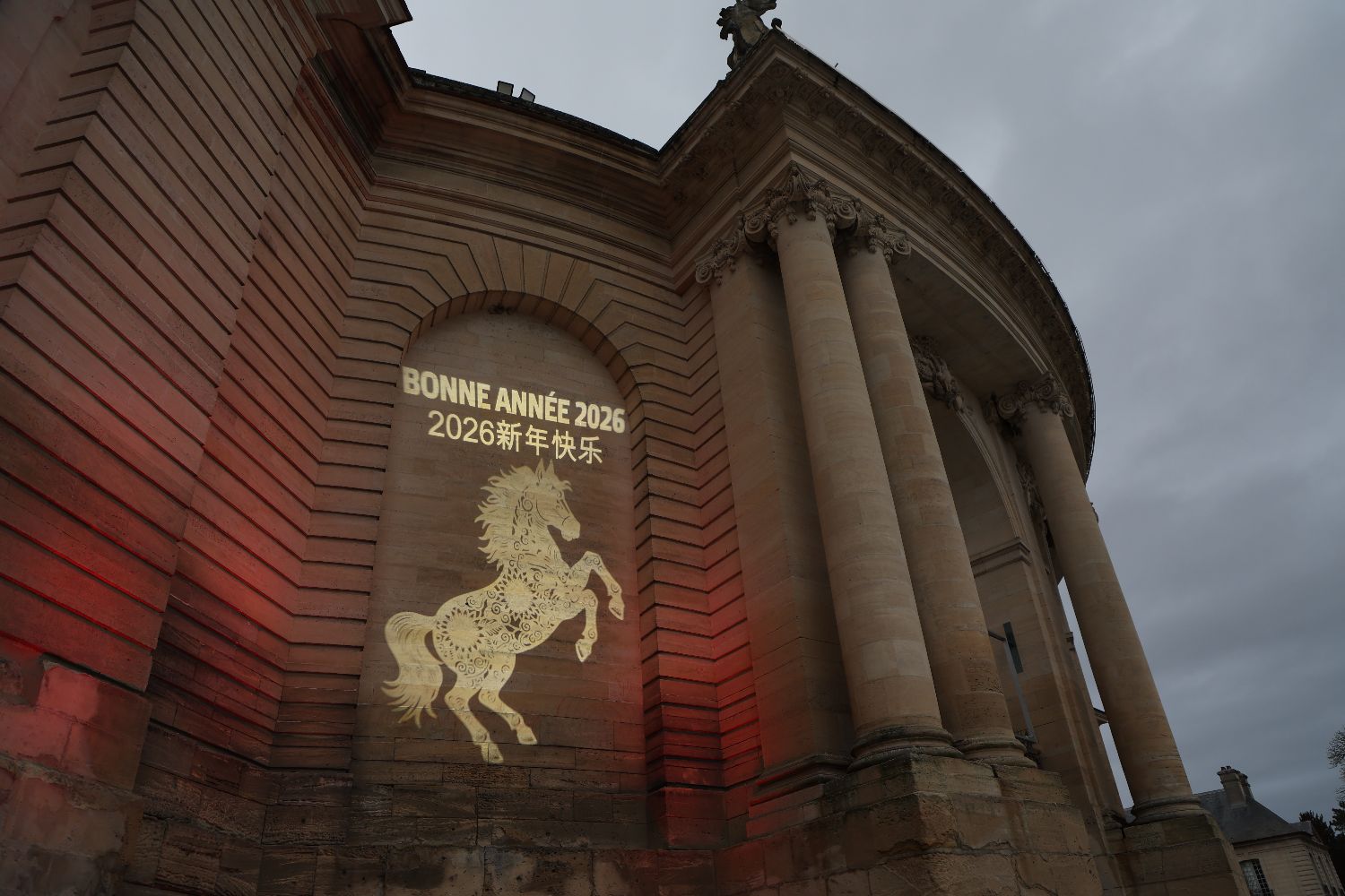 举办晚会的尚蒂伊赛马场大马厩是欧洲最宏伟的马厩之一,也是世界上最重要的马术中心之一。活动当天,不仅大马厩的外墙投影着中法双语的“2026新年快乐”字样和一匹巨大的火马,内部也被红灯笼、幸福结、红剪纸等装饰一新。中法马文化的巧妙相遇,不仅让这座拥有超过300年历史的知名马厩处处洋溢着农历马年春节的欢乐与喜庆,也让置身其中的每一位嘉宾深受触动。