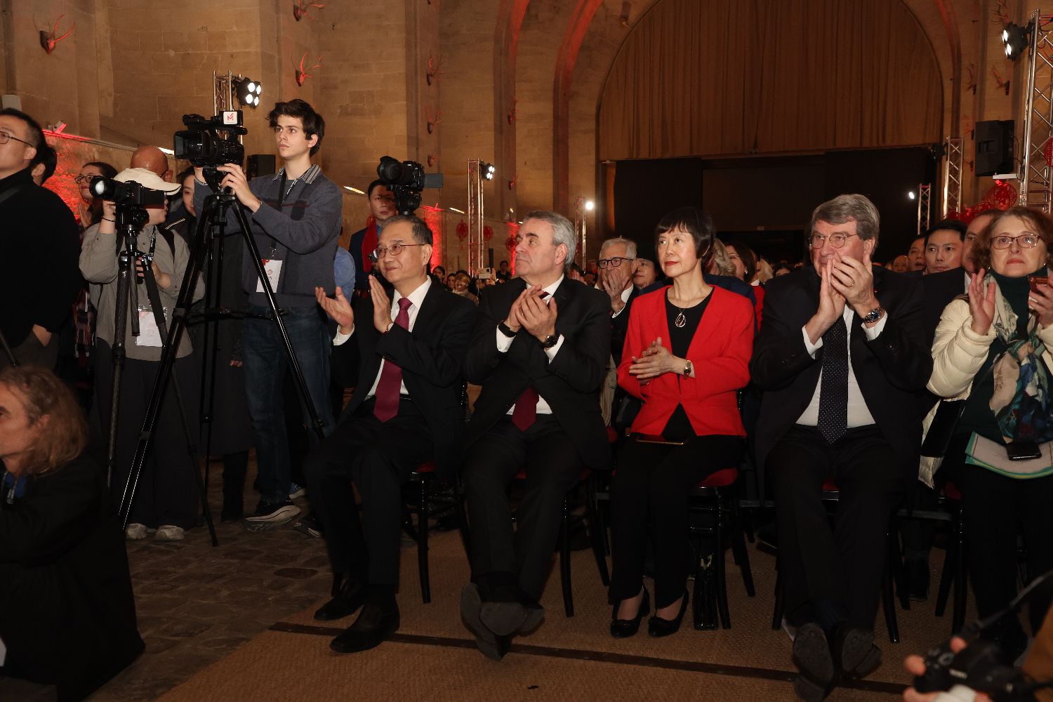 【欧洲时报记者马行健巴黎报道】当地时间2月11日晚,由中国驻法国大使馆与法国上法兰西大区共同举办的“金马迎瑞”中法马年新春晚会在法国著名的尚蒂伊赛马场成功举行。中国驻法国大使邓励及夫人张华、公使陈力、上法兰西大区议会主席格扎维埃·贝特朗,法兰西学院院务总监格扎维埃·达尔科斯,法国国民议会前议长等中法政要、法国各界友人、旅法华侨华人与中资机构代表600余人共庆佳节。