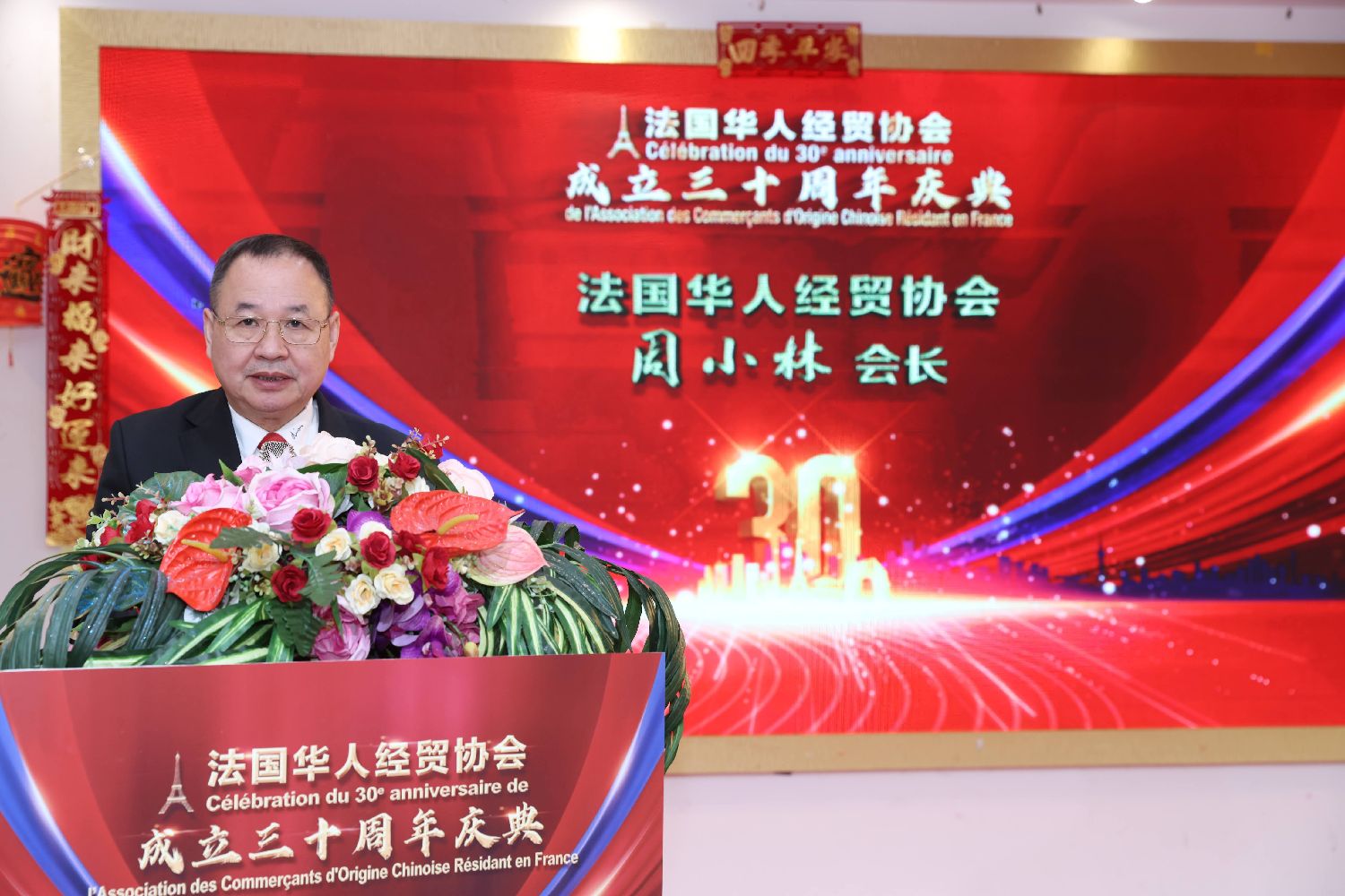 周小林会长在致辞中表示,回望来路,在历任会长团的接力带领下,三十年来,协会始终坚持为会员搭建互助平台、守护会员权益、促进共同发展;对外积极融入和谐侨社,与侨胞守望相助,传承中华优秀传统文化,始终秉持爱国爱乡的初心。正是在这一份坚守之中,协会在维护旅法侨胞合法权益、推动中法经贸与文化交流方面,取得了令人瞩目的成绩,成长为中法经贸交流中一座重要而稳固的桥梁。