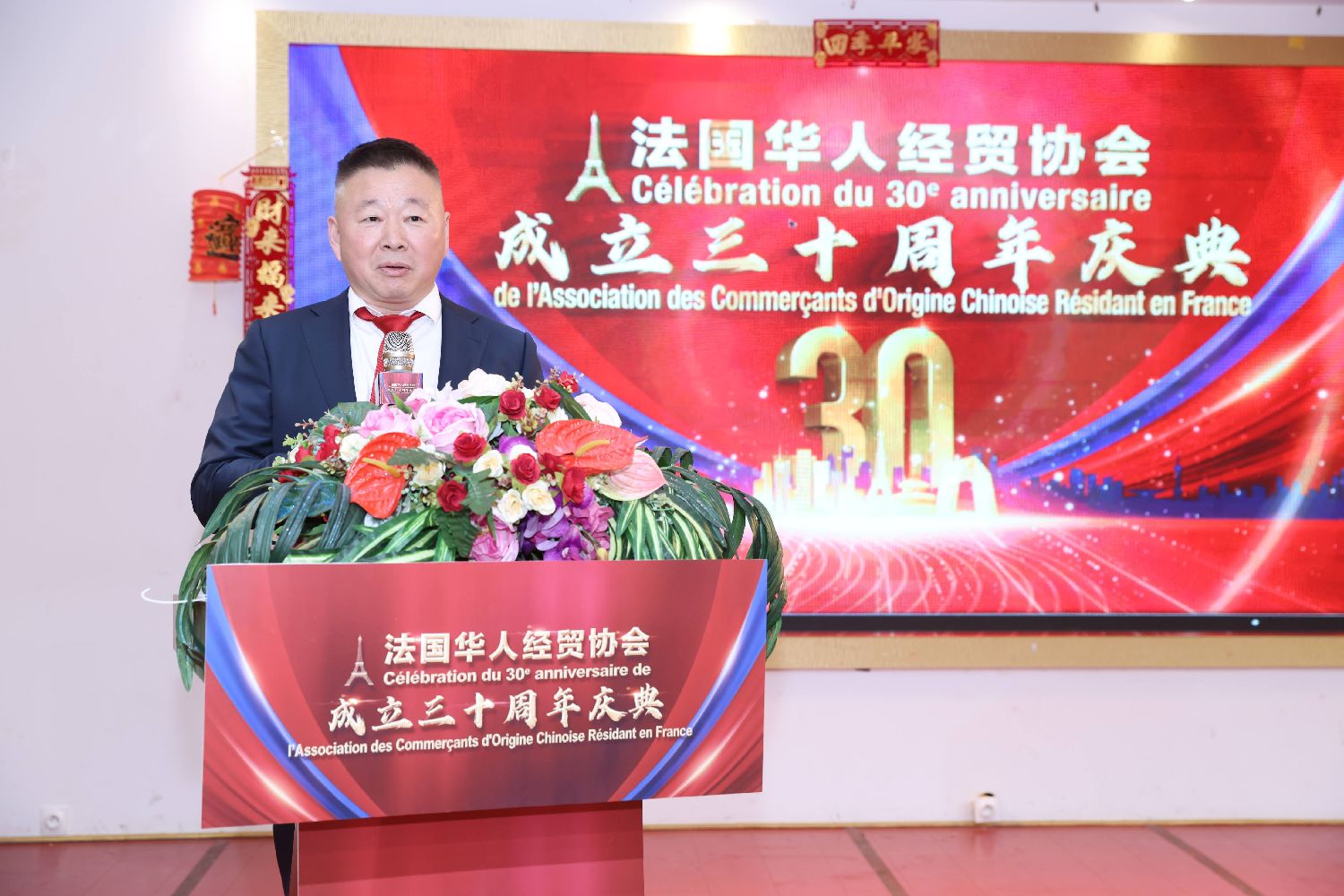 他表示,在这个难忘的三十年里,协会始终与祖国保持着紧密的情感联系和坚定的价值认同。历任会长团和会员代表积极参与各类侨务交流和参政议政活动,为祖国和家乡发展建言献策;在涉及国家核心利益和原则问题上,协会始终立场坚定、态度明确。与此同时,协会高度重视文化传承与社会责任,通过春节、中秋等传统节庆活动,让中华文化在海外薪火相传;在公益慈善领域,也始终以实际行动回馈社会,充分展现了旅法华商群体的责任与担当。他感谢30年来,中国驻法使馆和兄弟侨团的帮助,也感谢会员们的无私奉献。他表示,站在协会30年新的起点上,我们将继续传承优良传统,立足经贸、服务会员,在变化中把握机遇,努力为会员发展、为中法友好、为侨界和谐贡献更多力量。