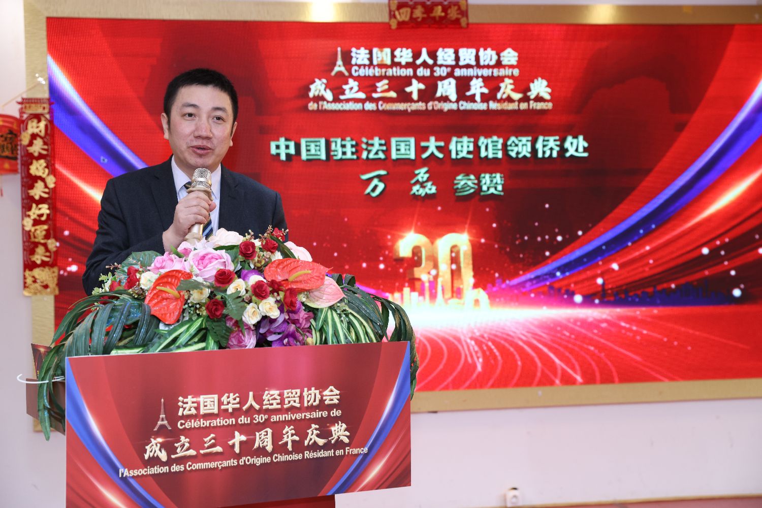 当天的活动由副会长边海峰主持。活动期间,来宾们也纷纷献上祝福:站在三十周年的新起点上,祝愿法国华人经贸协会继续守护这份初心与情怀,在时代浪潮中稳健前行。以更加开放的胸怀服务会员、连接中法、凝聚侨心,与旅法华商一道走向更加辽阔而温暖的未来,书写属于下一个三十年的崭新故事。