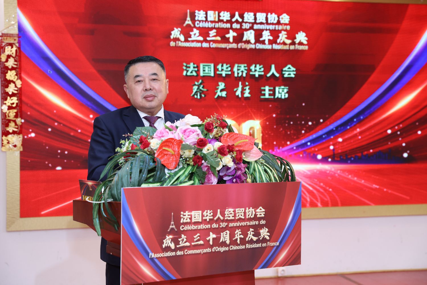 法国华侨华人会主席蔡君柱代表旅法侨界向法国华人经贸协会表示祝福。他表示,协会30年如一日,不忘初心,接续奋斗,不仅会务蒸蒸日上,也积极参与侨界大家庭的建设,成为旅法侨界的中坚力量。三十而立,希望协会在新的历程上继续守望相助,为会员发展,为侨界发展,为中法关系的发展贡献新的更大的力量。