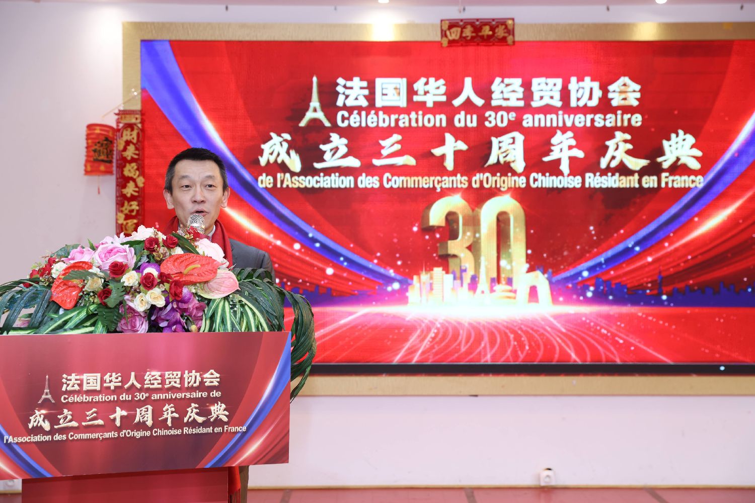【欧洲时报记者黄冠杰巴黎报道】2月15日晚,法国华人经贸协会假座巴黎大酒楼举行协会成立30周年庆典,盘点过去,展望未来,与旅法侨界携手共创新的辉煌。中国驻法使馆领侨处万磊参赞、查君酽秘书以及旅法侨界代表出席庆祝活动,与协会成员共庆30岁生日。欧洲时报总编辑梁扬应邀出席活动并送上祝福。