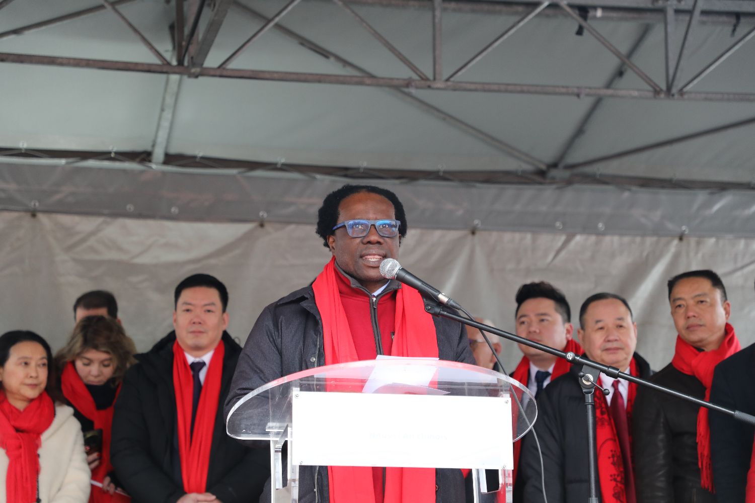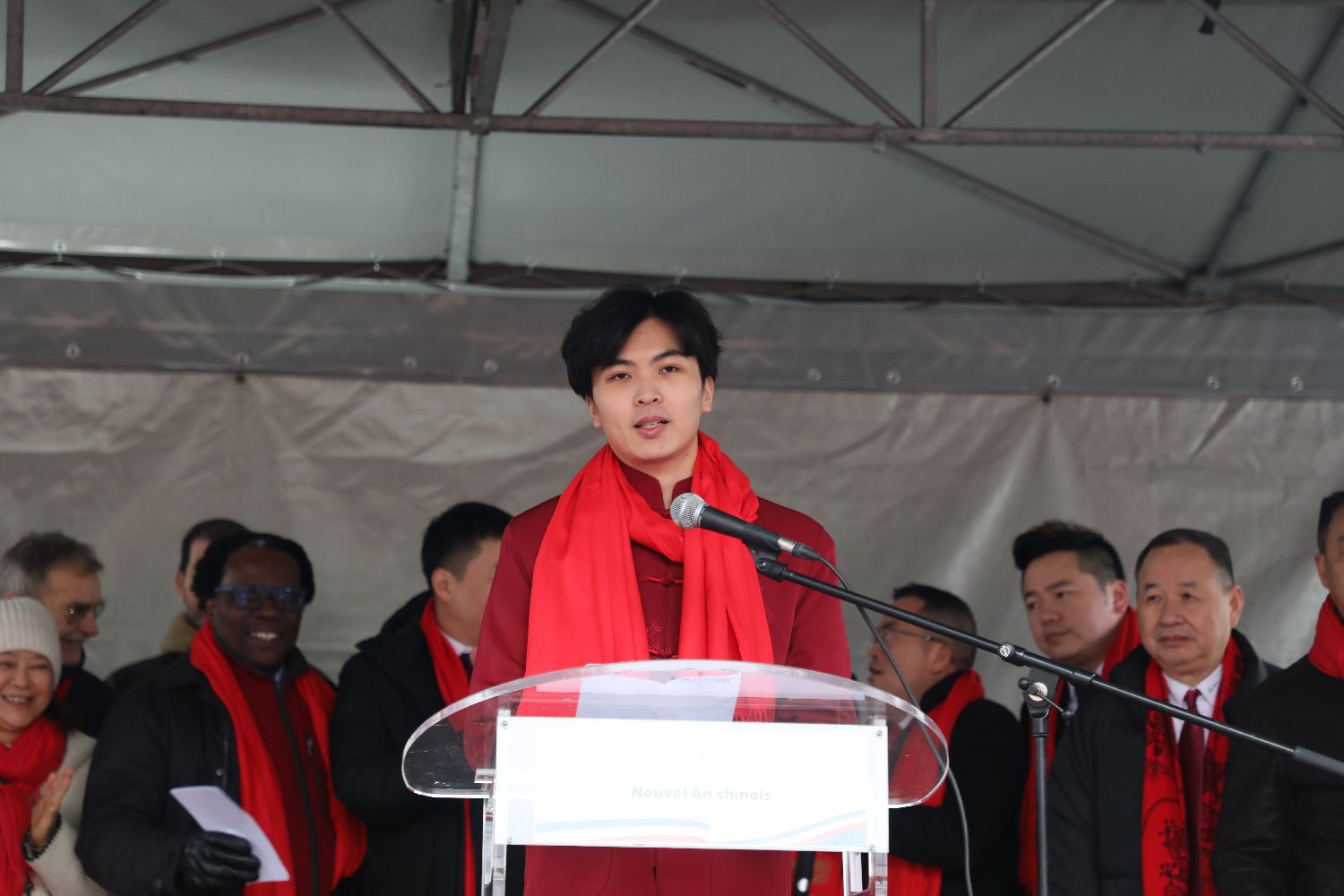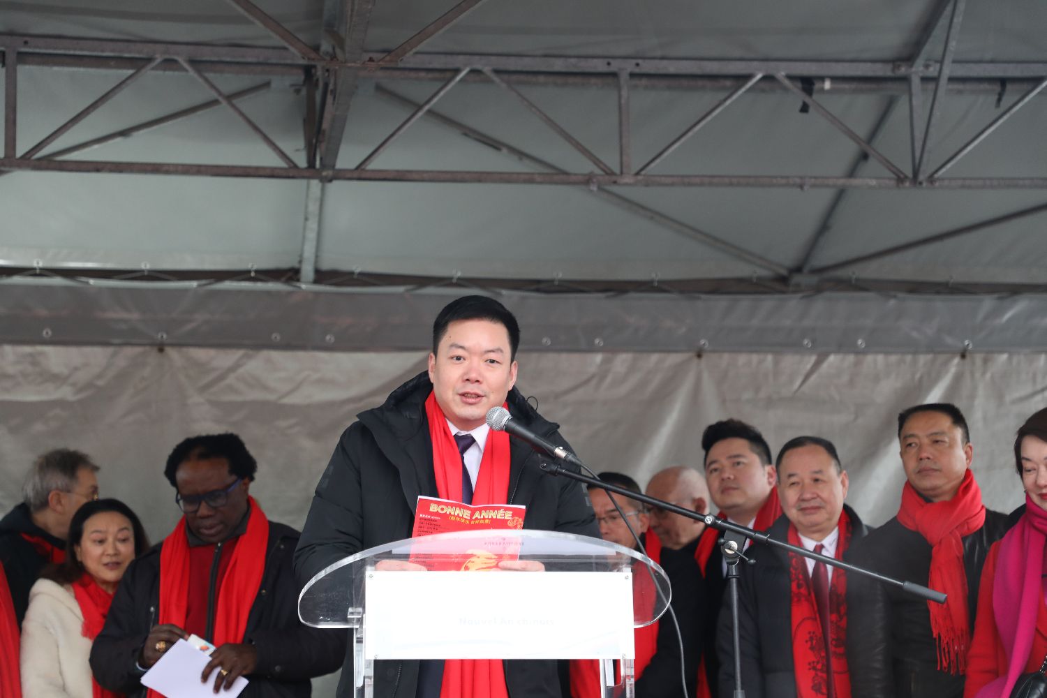 受因紧急公务临时回国的中法友谊互助协会会长何建兴的委托,执行会长陈志远代表何建兴会长及主办单位向大家致以新春祝福。他表示,值此辞旧迎新之际,感谢市政府与中国驻法使馆的支持,以及各侨团和志愿者的辛勤付出,使中华传统文化得以在法国精彩呈现。这不仅是一场节日庆典,更是一座沟通心灵的桥梁,是不同文化之间相互理解与尊重的见证。他指出,火马年象征奋斗、开拓与勇气,舞龙舞狮承载着对风调雨顺、事业兴旺的美好祝愿,也希望通过此类活动促进中法文化交流与相互理解。他表示,在法国生活的岁月,让我们深切体会到中法两国文化的交流与融合。正是在这样的交流与碰撞中,我们更加坚定文化自信,也更加珍惜多元共生的社会环境。希望通过今天的活动,让更多法国朋友走近中国文化、了解中国传统,也希望未来有更多类似的文化交流活动,为中法友谊注入新的活力。