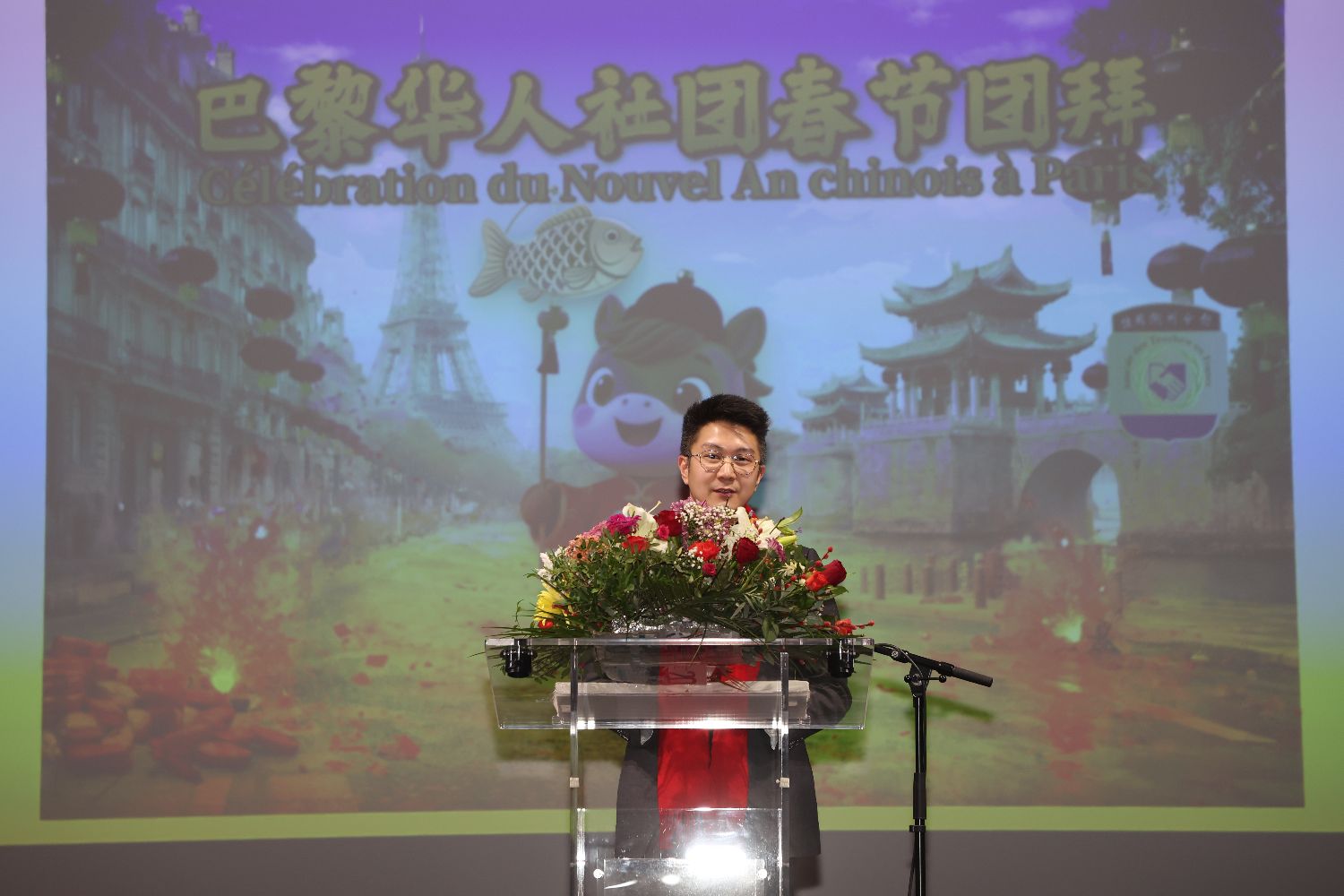 陈家辉在致辞中表示,今年是马年,马象征着活力、毅力和自由,同时也提醒我们必须以力量前进,同时也要保持忠诚和社群意识。春节不仅仅是一次日期的变更,更是缅怀故土、阖家团圆、感恩长辈、增进代际情谊、促进文化和价值观传承的时刻。作为负责国际关系的区议员,我想说潮州社群对巴黎十三区乃至整个巴黎市都具有重要价值。致辞过程中,陈家辉还回忆了与法国潮州会馆之间的众多故事,并用中文祝愿全场人员新年快乐、恭喜发财、马到成功。